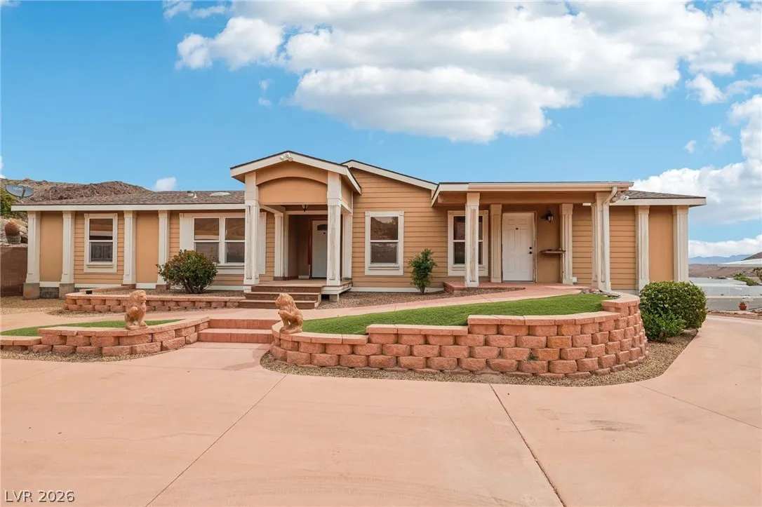 Enjoy year-round vacation-style living with stunning Lake Mead views from the kitchen, living areas, and deck. Set on a quiet oversized corner lot beside the mountains, this 2005 triple-wide home offers privacy, wildlife, a detached 2-car garage, and RV parking for all your toys. Close to Hemenway Park, museums and several walking trails.