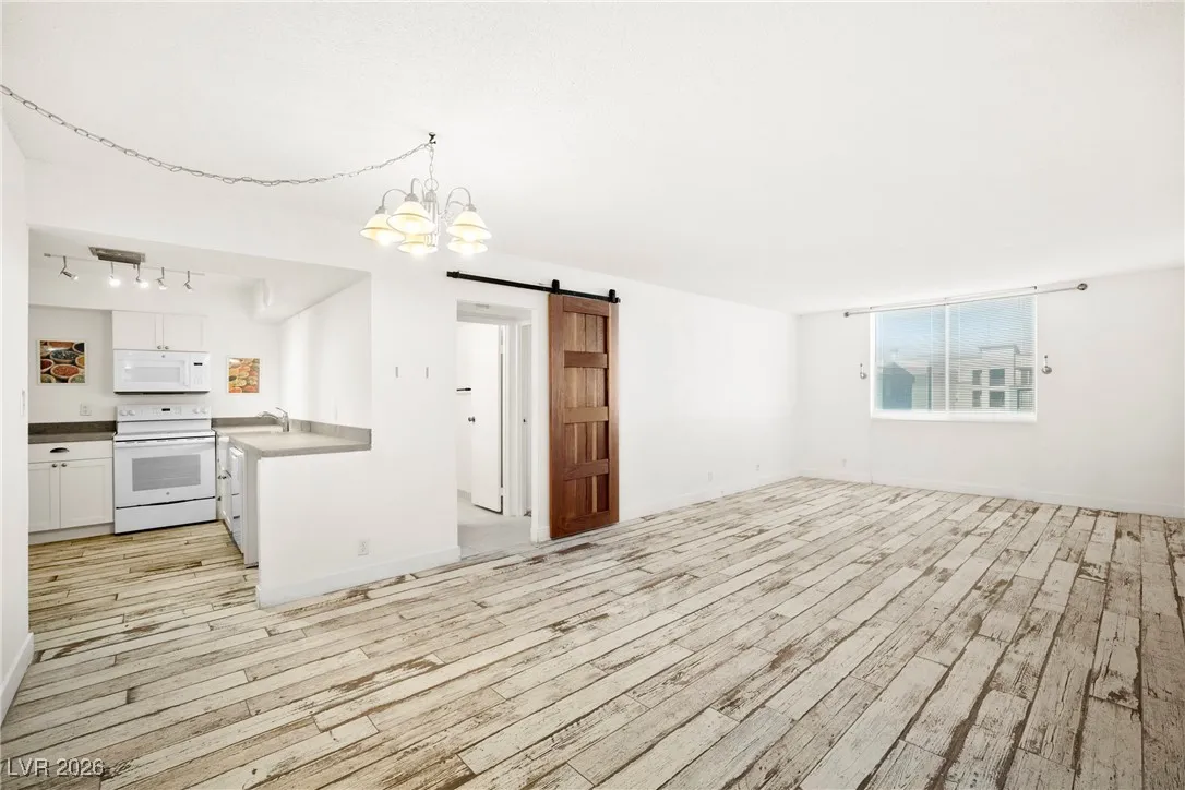 Welcome to this 4th-floor, 2-bedroom condo in Wimbledon Tower, ideally located near UNLV, in the center of all the action, yet tucked away for quiet living and focused study. Inside, the home features a spacious living area that flows into an open kitchen with newer cabinets, appliances, and sink, offering a fresh, functional space for everyday living.