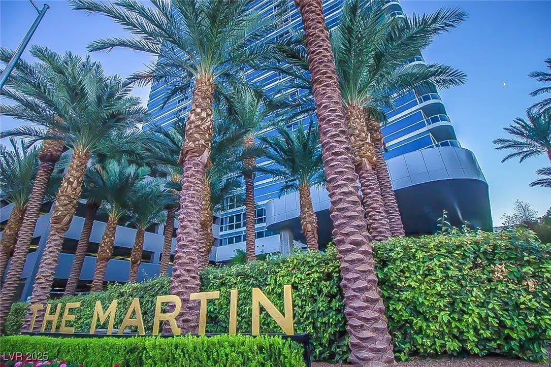 Luxurious High-Rise Living at The Martin. Amazing Views of the Strip, Mountains and Sunset with Floor to Ceiling Windows from this 10th-floor corner unit. This one bedroom (possible 2 bedroom) unit features Stainless Steel Appliances, Gourmet kitchen, with Large Balcony including hardwood floors. Amenities include pool, spa, massage rooms, valet, concierge, 24-hour concierge service and more!.