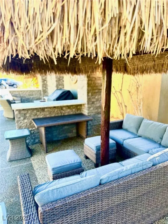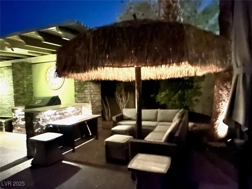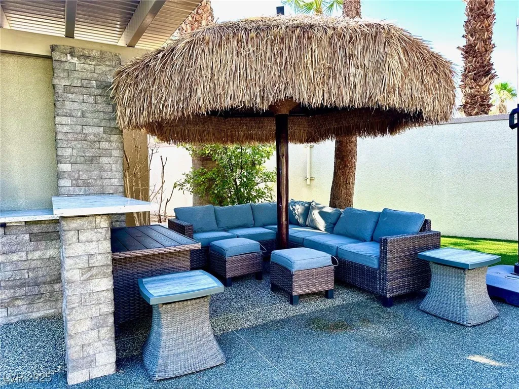 Located in the guard gated Las Vegas Motor Coach Resort, this beautiful site features a gorgeous Tuscan stone structure with hard roof cover, BBQ, fire pit, bar area, patio furniture and more. Also featured on this amazing site is lush landscaping and privacy wall. One of best deals in the resort!