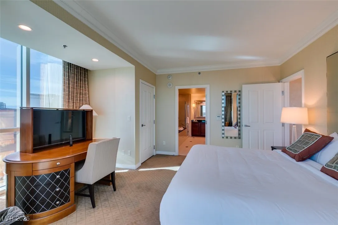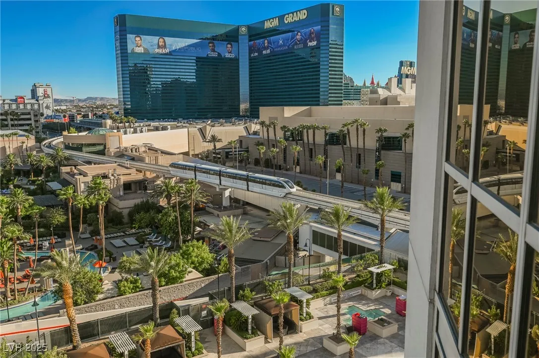 OWNER FINANCING AVAILABLE! The panoramic view from the balcony of this one-bedroom showcases the MGM Grand Pools, and South Strip! Furnished turnkey suite features a full kitchen with Subzero & Miele appliances, including an oven and dishwasher, granite counters, a built-in entertainment center, a private owner’s closet & private washer/dryer. Spacious bathroom with his and her sinks, separate walk-in shower, and Jacuzzi tub. The secondary bathroom features its own walk-in shower. The unit comfortably sleeps 4, with a plush King bed and pullout sleeper. Enjoy access to MGM Signature’s 3 private heated pools & spas, cabanas, a lounge with a full bar, gym, valet, concierge, Starbucks, and laundry! Connected to MGM Grand, Palm Tree Beach Club, Lazy River, several high-end restaurants, casino, and MGM Grand Spa. The onsite rental program, AIRBNB, or third-party rental program is available.