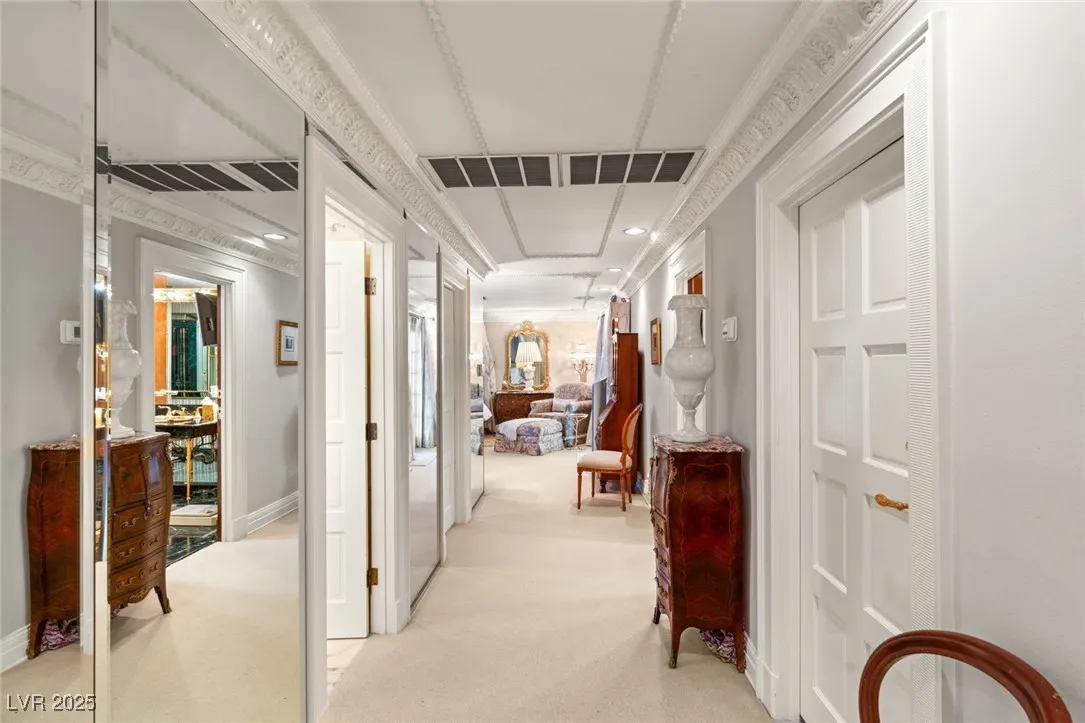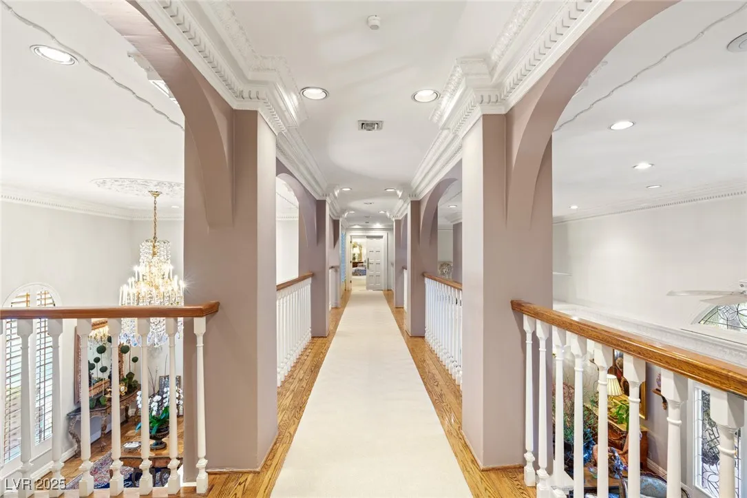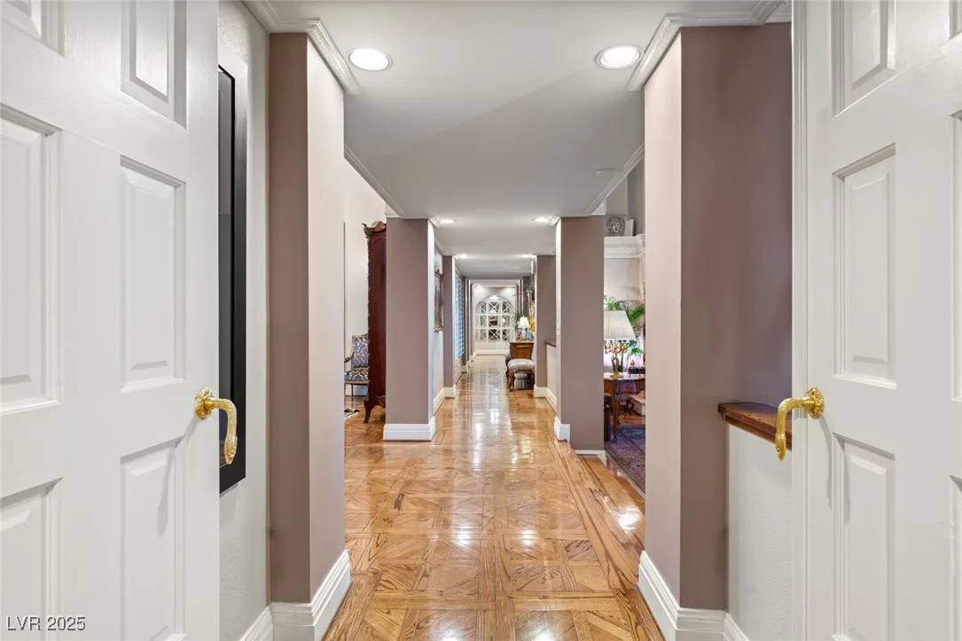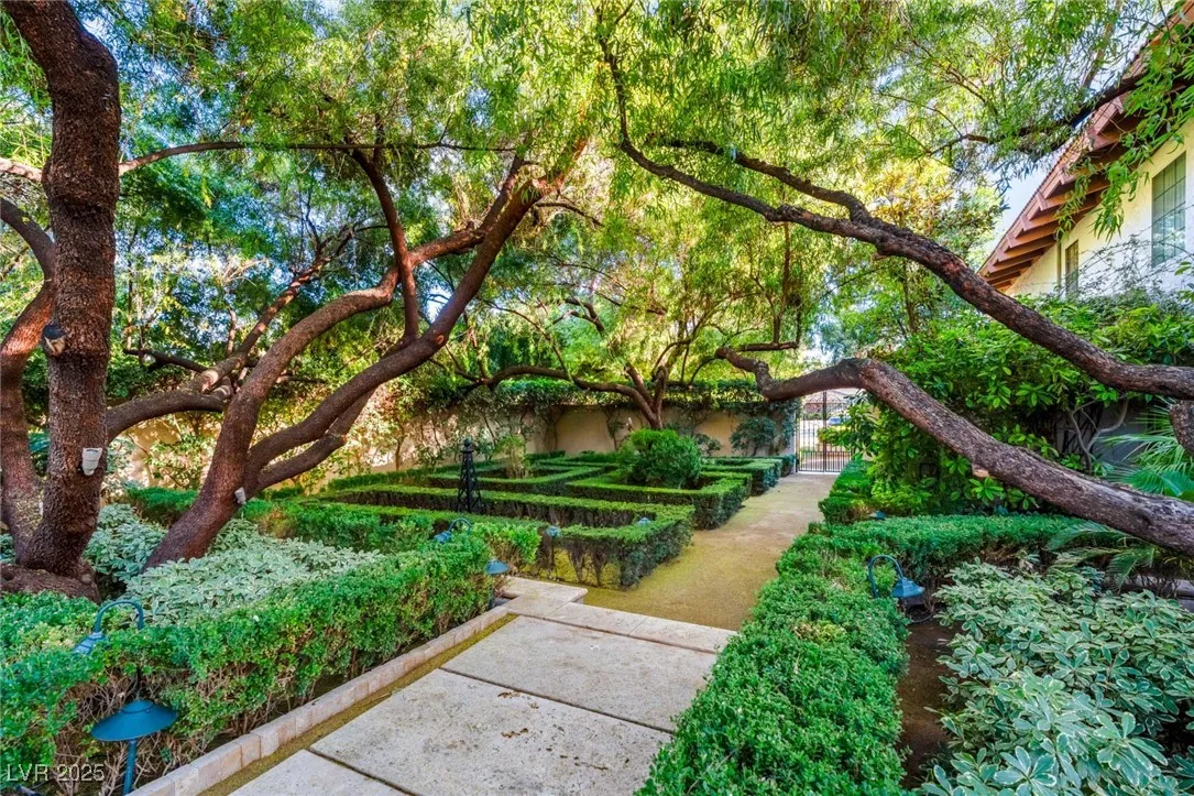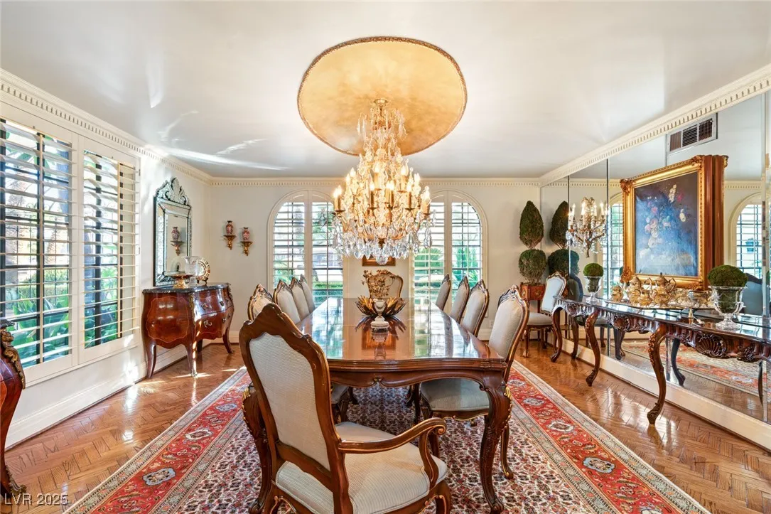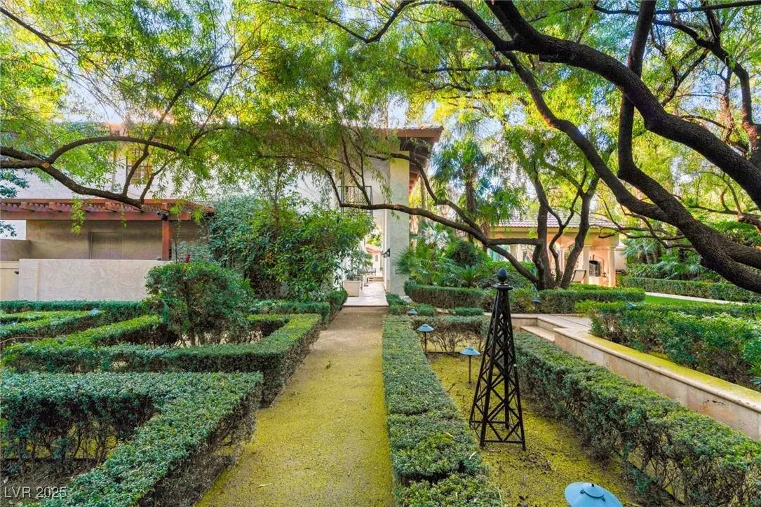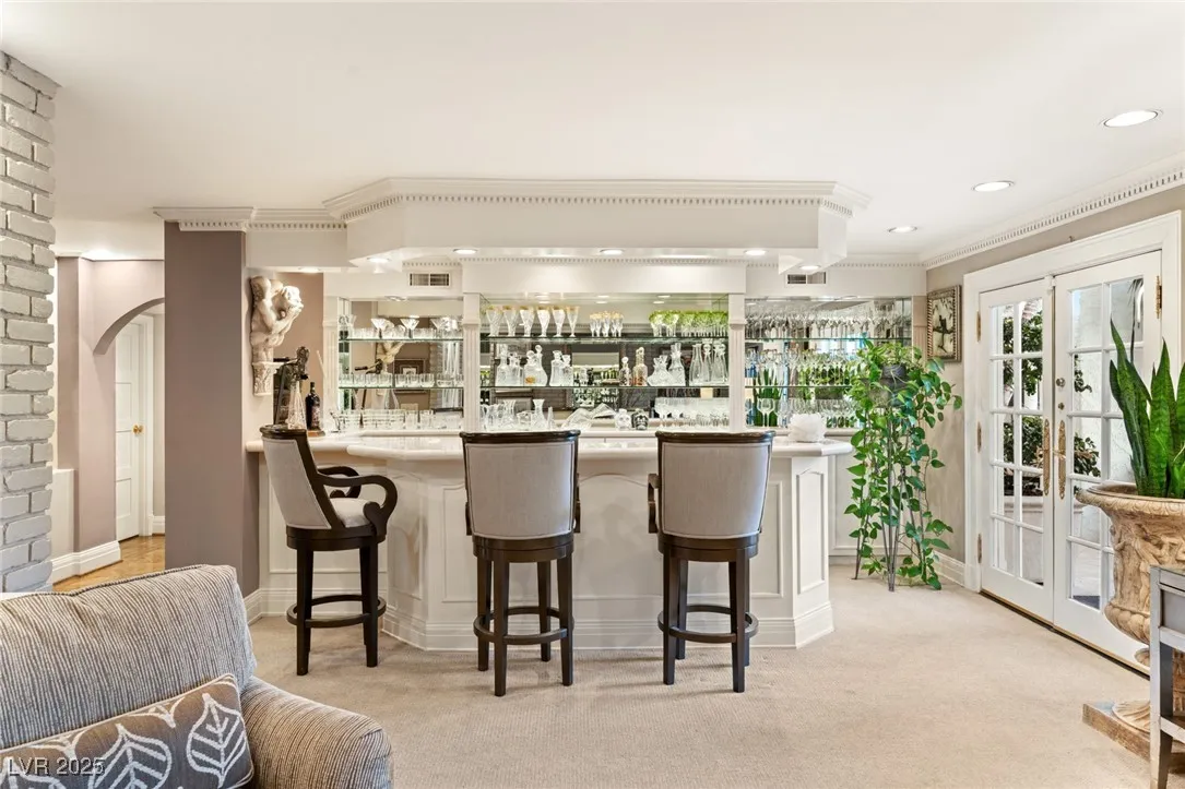 This timeless and classic Estate has quality details and finishes. 24 hr. guard gated Equestrian community. Wood flooring, Baccarat chandeliers, family room with bar, 2 downstairs bedrooms, one currently as office. Balconies with views, refreshed kitchen, grand foyer with sweeping staircase. Stunning backyard with 1 million dollars spent on remodel. All tiled pool and Spa, outdoor kitchen with two dining areas. Private retreat in backyard, fountain, mature landscape. Mother-in-law suite downstairs is wheelchair accessible with its own entrance. Plenty of space for additional garages to be built. Pristine! – **Sierra Vista Ranchos in Las Vegas has a 20-stall barn. While there are 20 stalls, 16+ are typically used for horses, with the other two reserved for hay storage. The stables are self-care, meaning horse owners are responsible**All drapes do not convey**