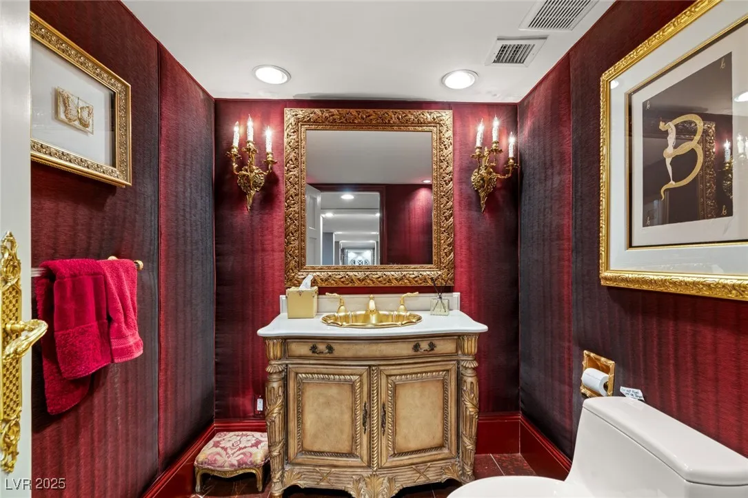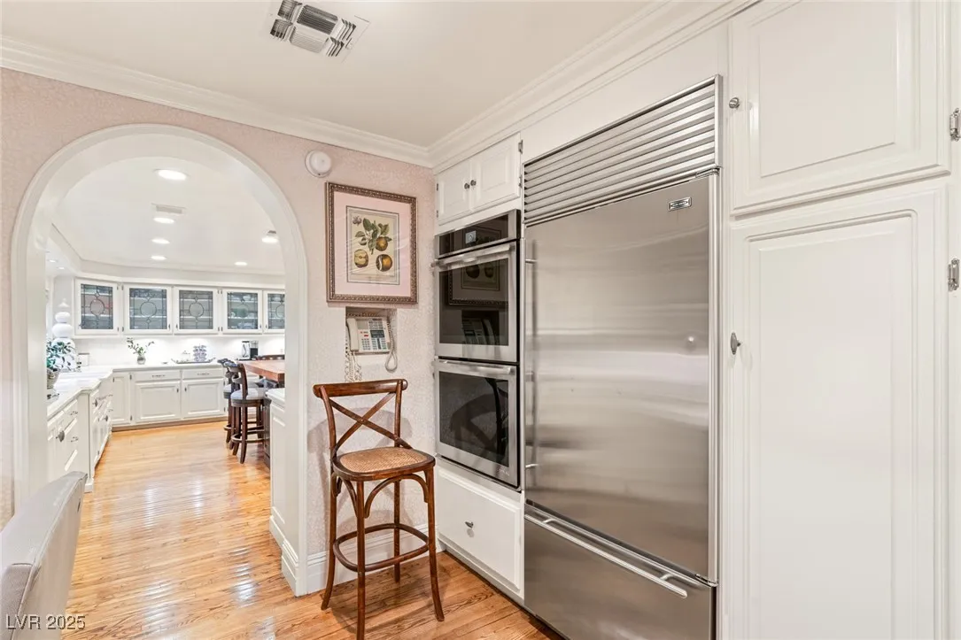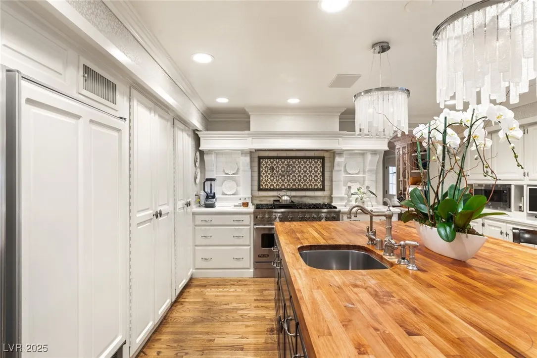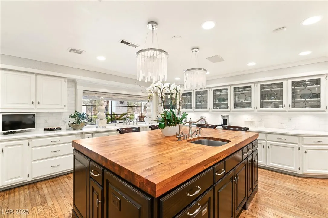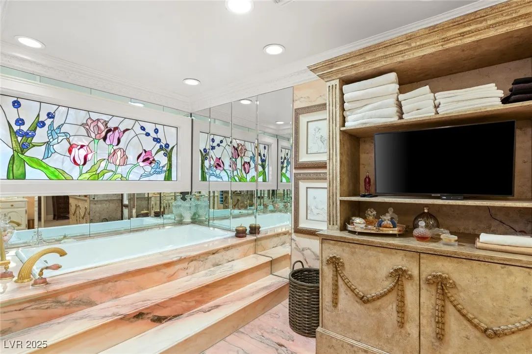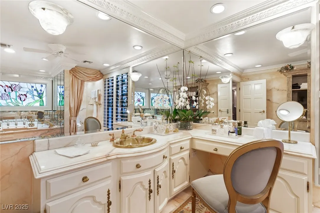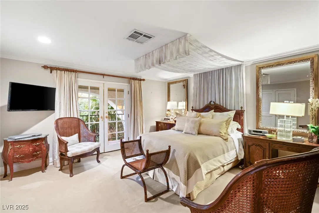 This timeless and classic Estate has quality details and finishes. 24 hr. guard gated Equestrian community. Wood flooring, Baccarat chandeliers, family room with bar, 2 downstairs bedrooms, one currently as office. Balconies with views, refreshed kitchen, grand foyer with sweeping staircase. Stunning backyard with 1 million dollars spent on remodel. All tiled pool and Spa, outdoor kitchen with two dining areas. Private retreat in backyard, fountain, mature landscape. Mother-in-law suite downstairs is wheelchair accessible with its own entrance. Plenty of space for additional garages to be built. Pristine! – **Sierra Vista Ranchos in Las Vegas has a 20-stall barn. While there are 20 stalls, 16+ are typically used for horses, with the other two reserved for hay storage. The stables are self-care, meaning horse owners are responsible**All drapes do not convey**