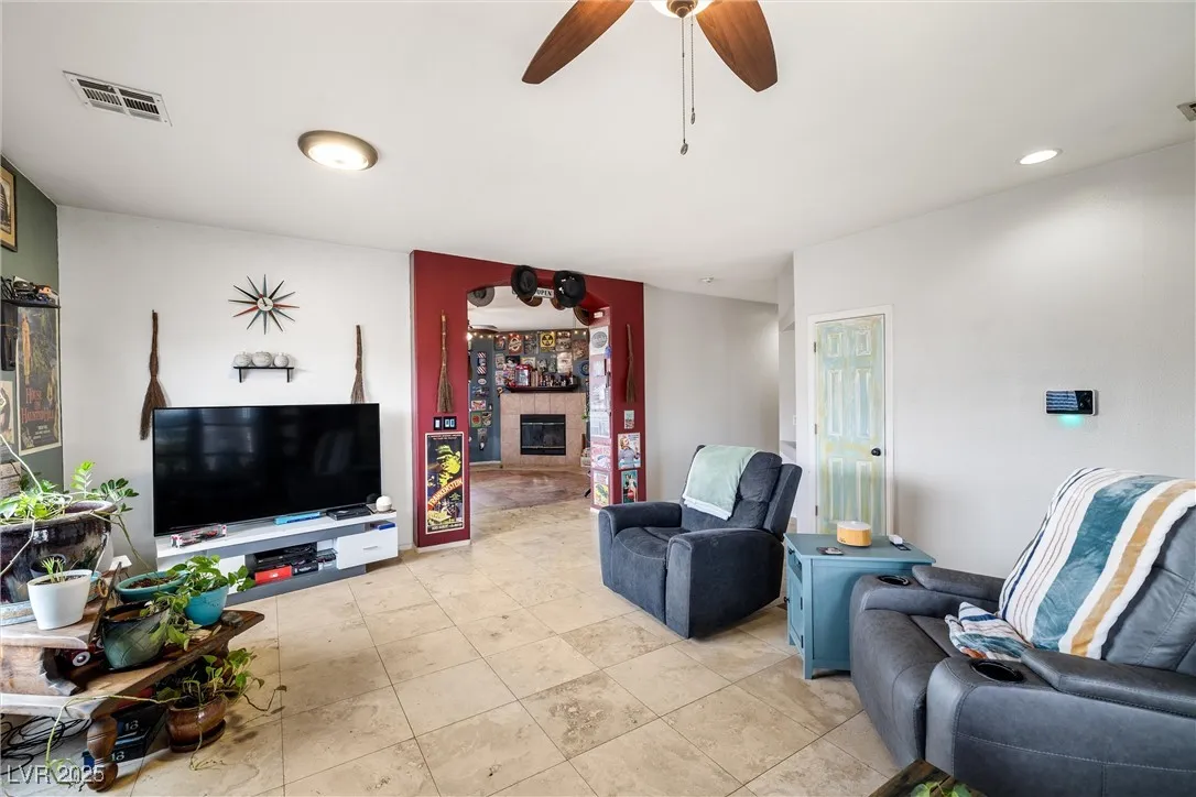 Experience pride of ownership in this beautifully maintained 4-bedroom, 2-bathroom, 2,026 sq. ft. home, offering comfort, style, and modern conveniences. Boasting a spacious 3-car garage, this home welcomes you with a large entryway leading into a well-appointed kitchen featuring a breakfast bar, island, and newer water heater. The cozy living area is highlighted by a wood-burning fireplace, while the primary suite offers a relaxing retreat with a Roman soaking tub. Smart home features include a Nest thermostat, Vivint home system, smart locks, and a video doorbell for added security and convenience. Ceiling fans, blinds, and window coverings enhance comfort throughout. Step outside to a fully fenced backyard, complete with a cinder block bench, firepit, and covered patio—perfect for entertaining. Travertine tile, custom doors, and a dedicated dog run add unique touches to this must-see property. With no HOA, this home is truly a rare find. Schedule your tour today!