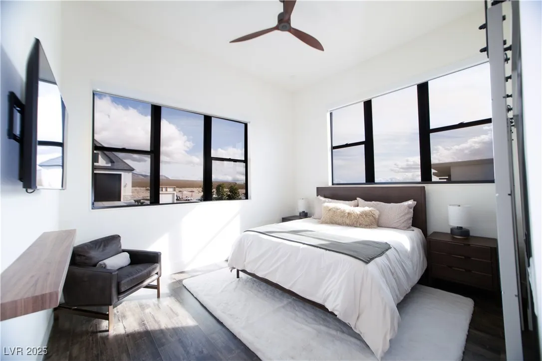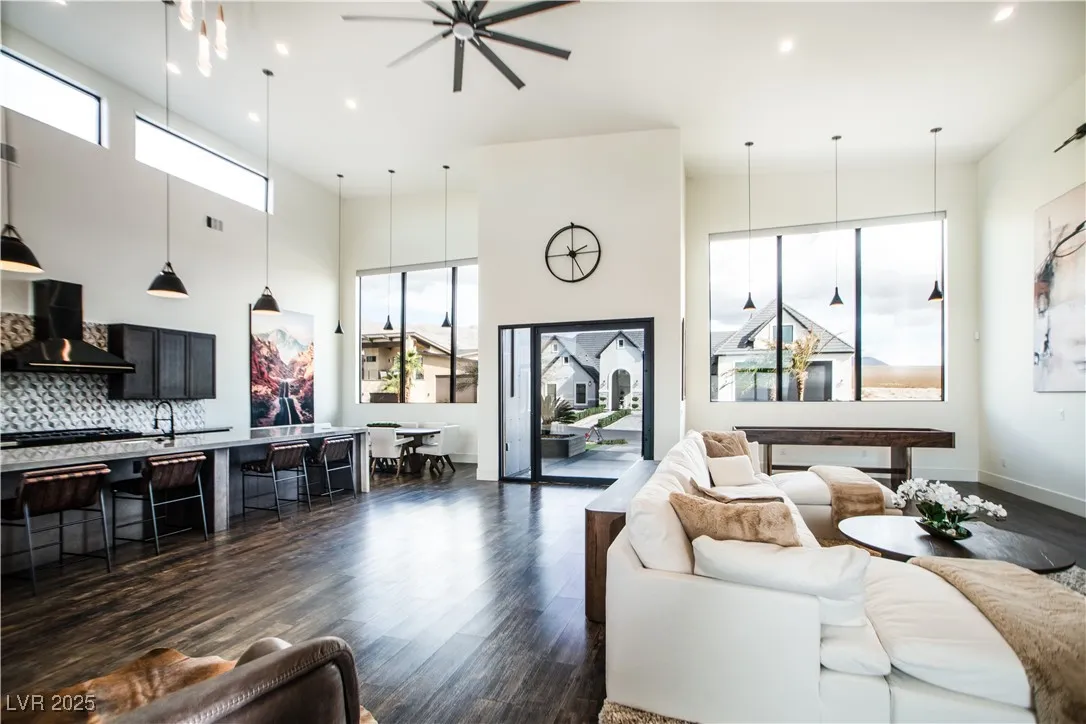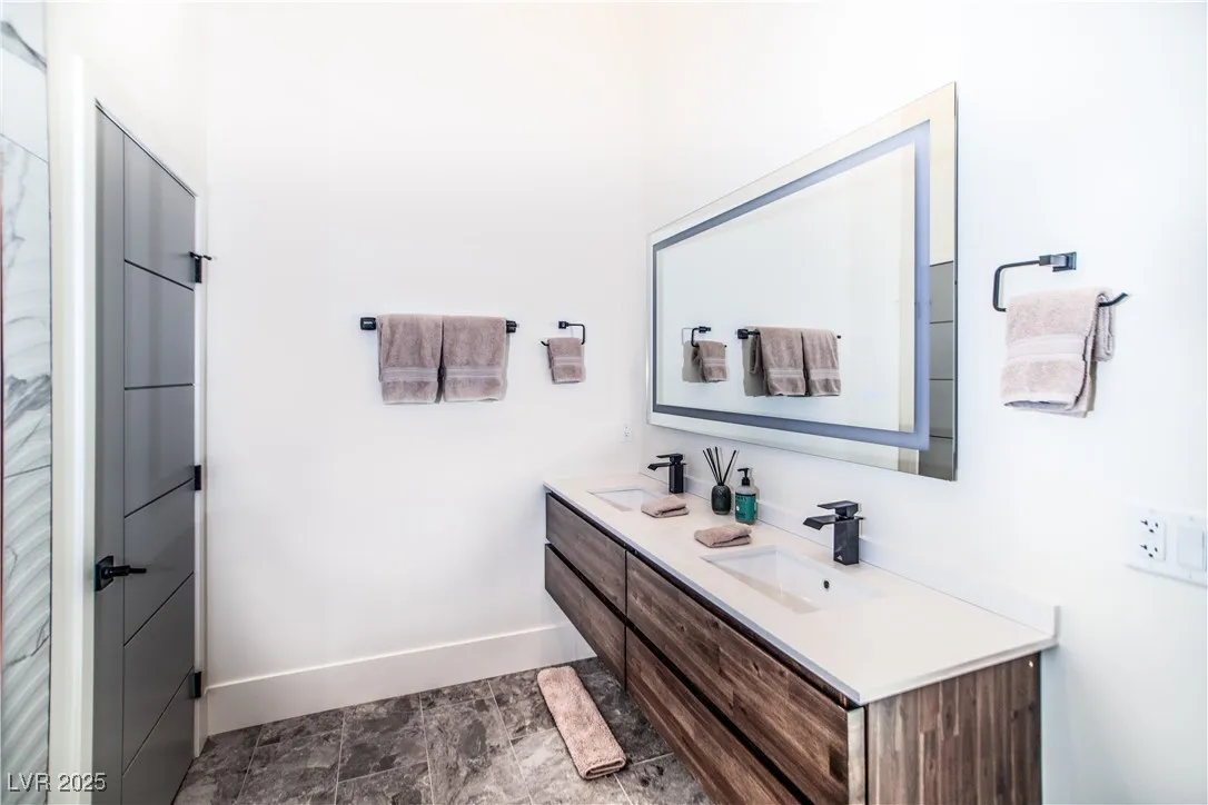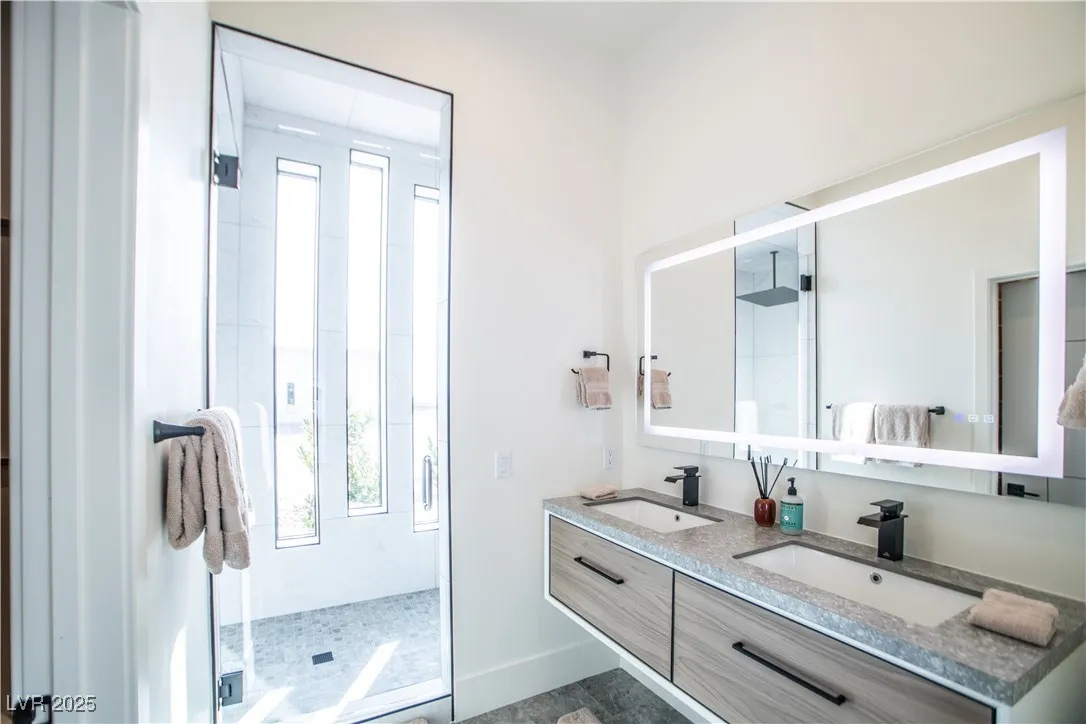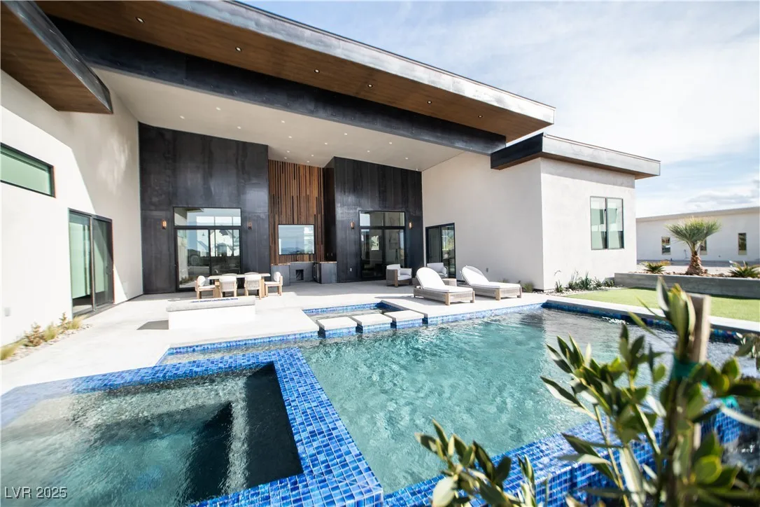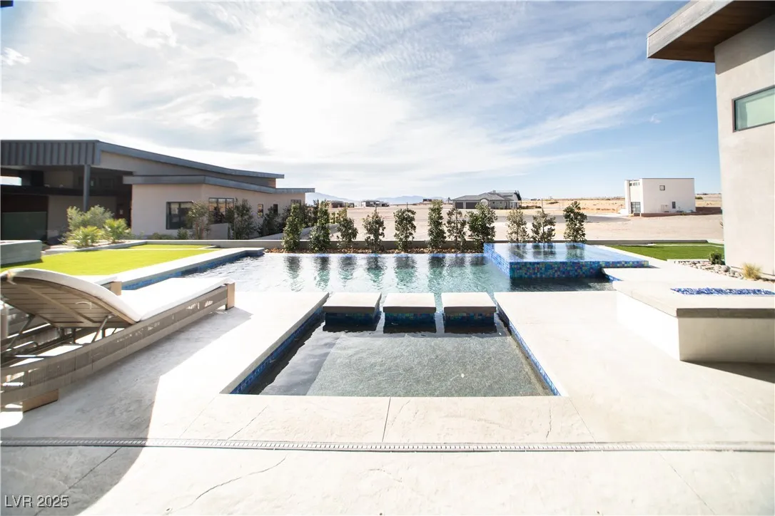 Luxurious home within the prestigious Spring Mountain Raceway, perfect for race enthusiasts. This 3-bedroom, 3.5-bathroom home offers 2,850 sq. ft. of modern living on a .346-acre cul-de-sac lot. This property boasts a 5-car garage with epoxy floors, providing the perfect space for your prized vehicles. The home is packed with high-end amenities, including a custom infinity pool, hot/cold tub, and built-in outdoor kitchen for ultimate relaxation and entertainment. This new build is pre-wired for smart home integration, featuring automated Hunter Douglas window blinds, built-in wireless charging ports, and a Ubiquiti security camera system with gatehouse notifications. Additional touches include no-touch Japanese toilets, a steam shower, heated/illuminated bathroom mirrors, closet built-ins, and a central alarm system. High-end furnishings are available upon request, making this an effortless move-in opportunity. Experience luxury, technology, and automotive passion all in one.
