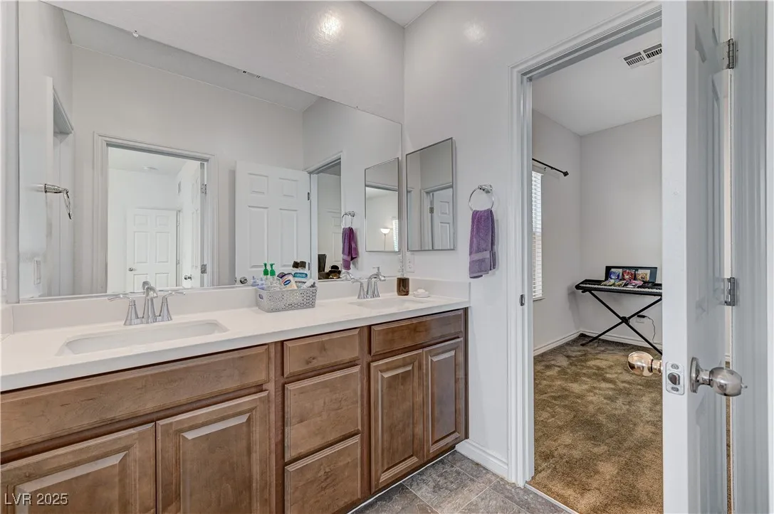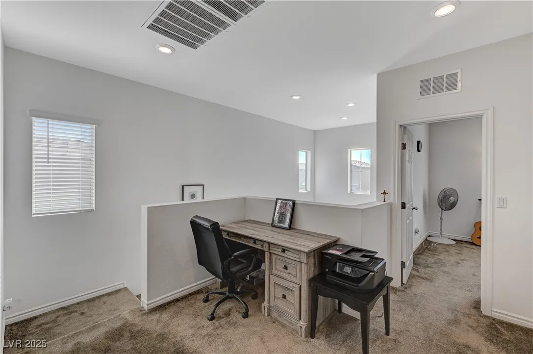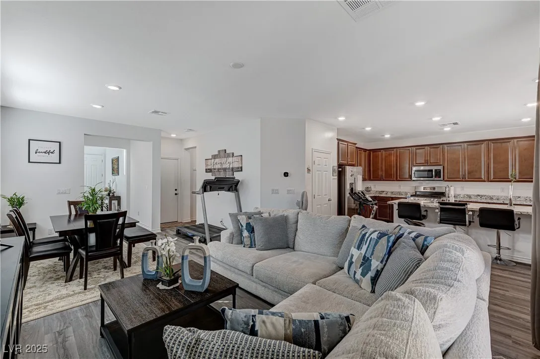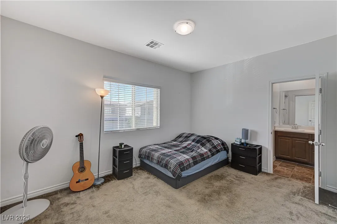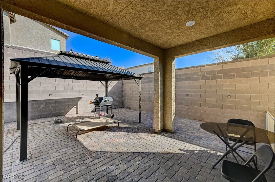 This stunning residence boasts numerous upgrades and features , including a full bathroom and a bedroom located in the main floor.Enjoy the luxury of new flooring through downstairs enhancing the home’s modern appeal. Step outside to discover a covered patio and an added gazebo , perfect for relaxing entertainment an a already added gas connection for your perfect BBQ grill.Nestled in a beautiful gated community, this home offers peace of mind and sense of security. Conveniently located just 15 minutes for the vibrant Las Vegas Strip. Plus, the property is equipped with solar panels, providing energy efficiency and lower utility bills. Lennar Home, Skyland Model. Don’t miss your chance to own this remarkable home!
