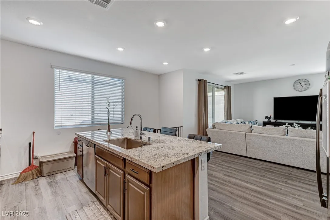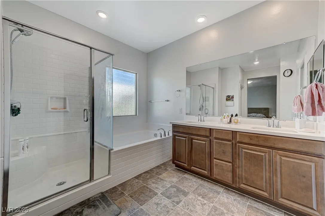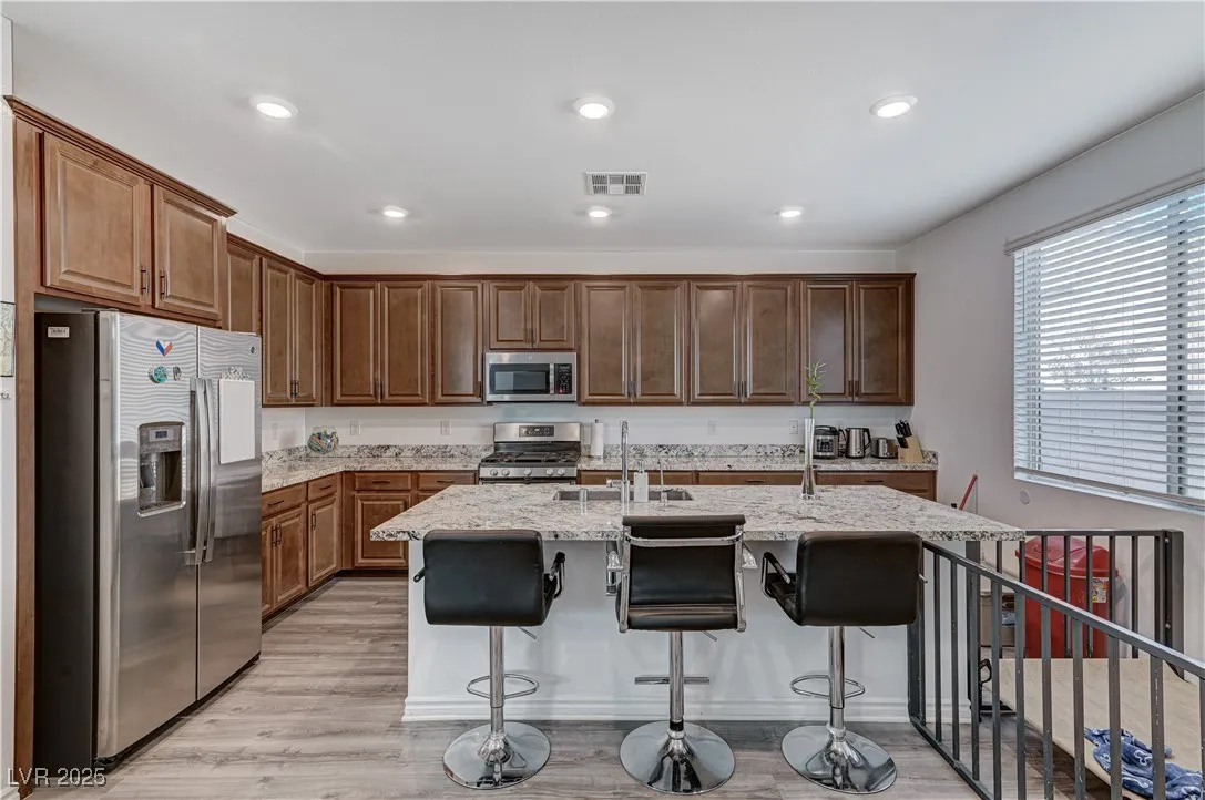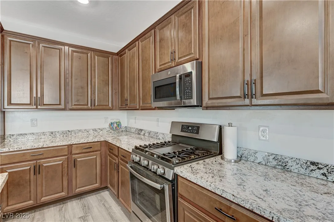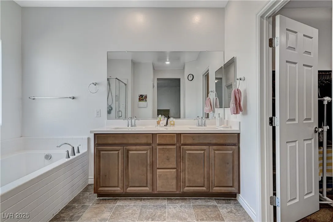 This stunning residence boasts numerous upgrades and features , including a full bathroom and a bedroom located in the main floor.Enjoy the luxury of new flooring through downstairs enhancing the home’s modern appeal. Step outside to discover a covered patio and an added gazebo , perfect for relaxing entertainment an a already added gas connection for your perfect BBQ grill.Nestled in a beautiful gated community, this home offers peace of mind and sense of security. Conveniently located just 15 minutes for the vibrant Las Vegas Strip. Plus, the property is equipped with solar panels, providing energy efficiency and lower utility bills. Lennar Home, Skyland Model. Don’t miss your chance to own this remarkable home!