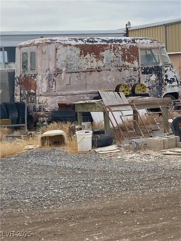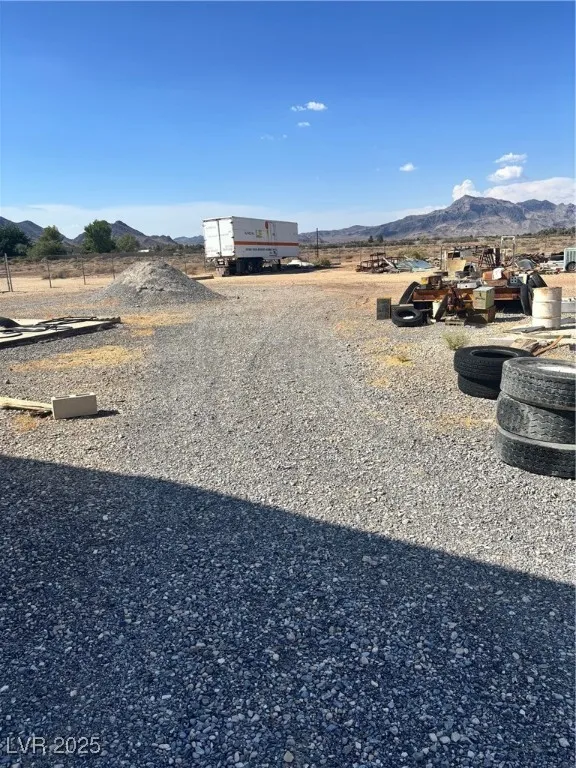 *Unique, one-of-a-kind opportunity to own 8 acres in Pahrump; all 4 lots are adjacent to each other.* Corner lot comes complete with a 2 bedroom, 2 bath manufactured home, a massive garage/workshop filled with a plethora of chattels; everything from new & used tools, toolboxes, ladders, compressors, pulleys, saws, drills, cables, cement tools, wood working tools…..to name a few. Also, included is an office trailer filled with useable items, some antiques AND all items on the corner property are YOURS…..lg and small equipment, trailers, truck beds, 2 semi cargo vans – you have to see everything to believe your good fortune! Water, electric & septic for mobile home. Electricity in office trailer and garage/workshop. All 4 parcels are zoned Neighborhood Commercial – so live where you work!