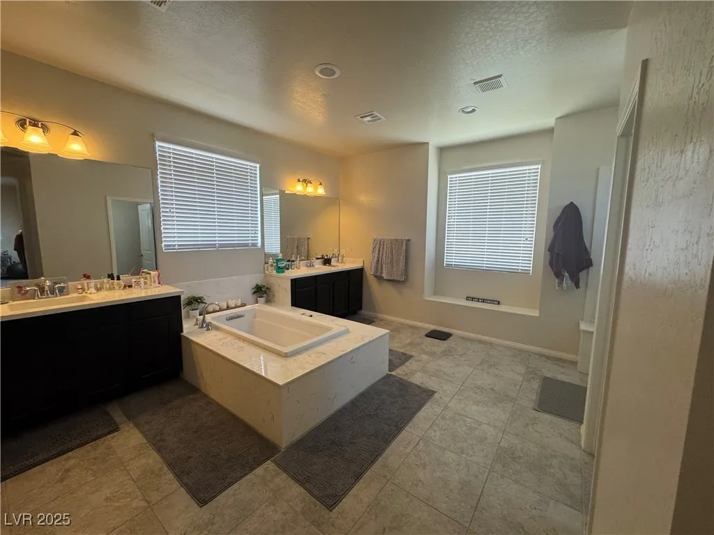Located inside the prestigious Rhodes Ranch Golf Course Community, this stunning home offers 4 bedrooms, 3 bathrooms, and a 2-car garage. The oversized master bedroom features a luxurious en-suite bathroom with a soaking tub and separate shower. Upstairs includes a spacious loft and two generously sized guest bedrooms, while the downstairs offers a convenient guest bedroom and full bathroom, perfect for visitors or multigenerational living.The gourmet kitchen boasts a huge island with breakfast bar, ideal for entertaining or casual dining.
