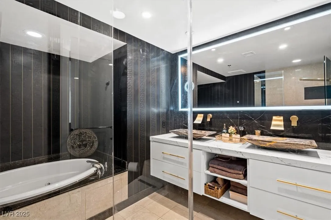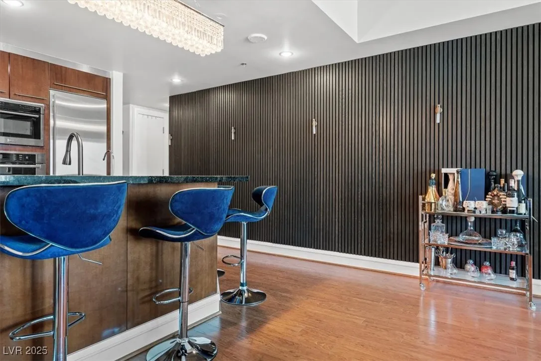 Designed for those who appreciate luxury, this unit showcases Versace wallpaper, textured wall accents, a stunning chandelier, and refined furnishings. Enjoy an array of world-class amenities, including a pool, spa, gym, movie theater, valet parking, and sauna, all while being steps away from Las Vegas’ finest dining and entertainment