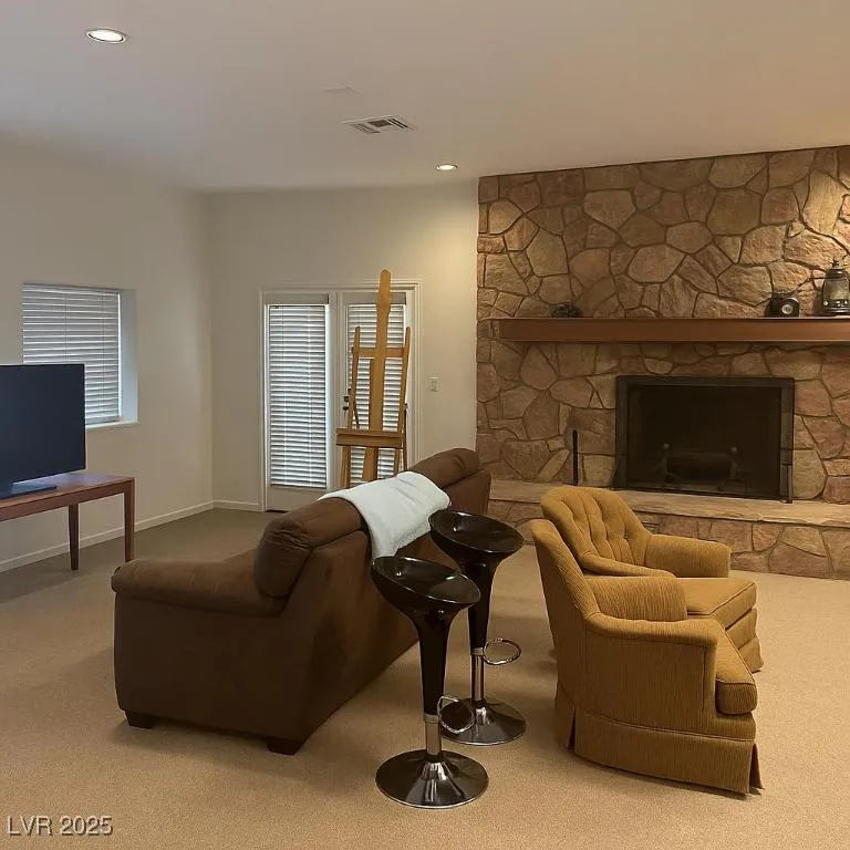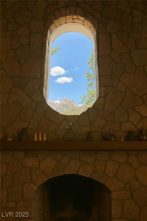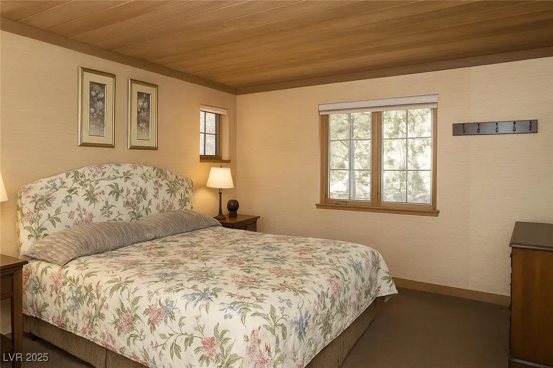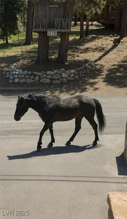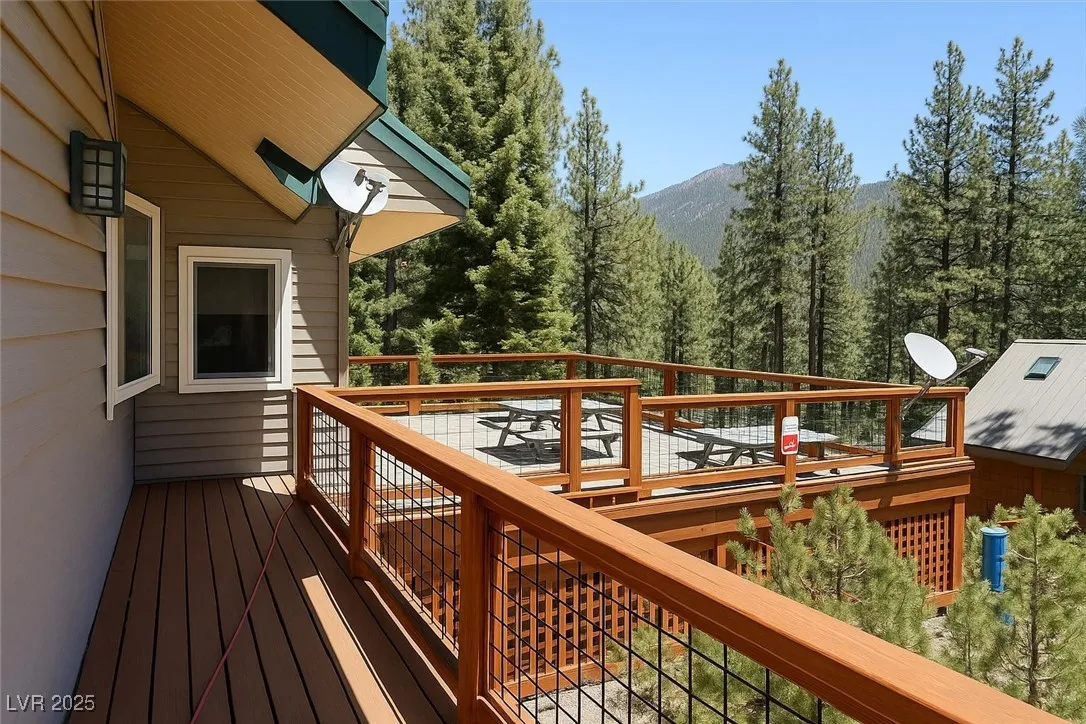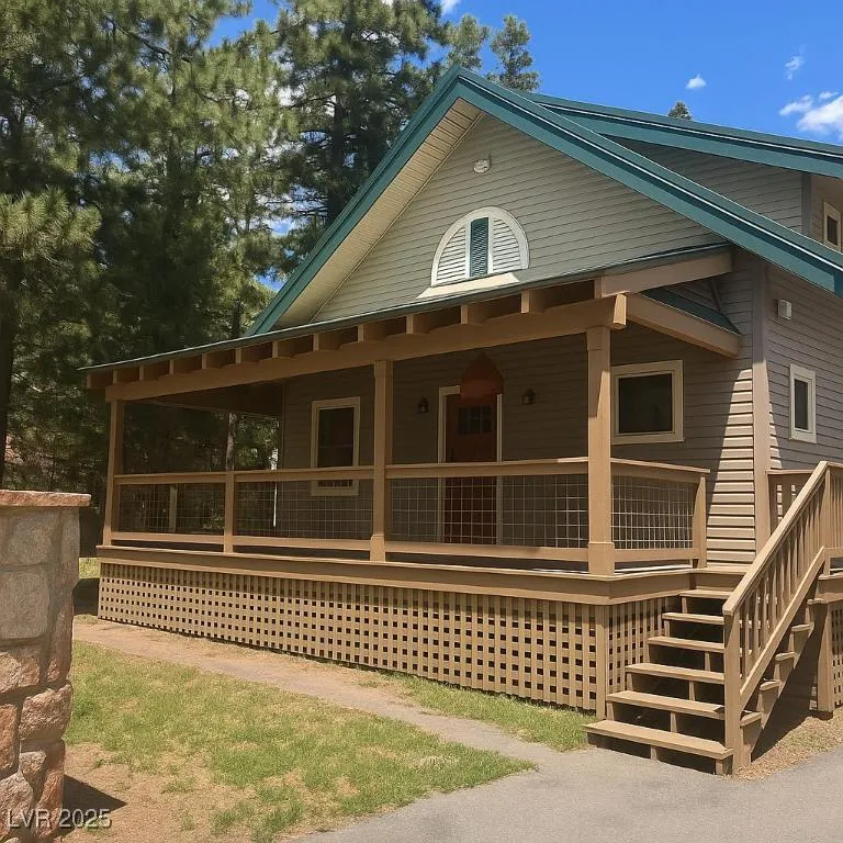 Experience mountain living at its finest in this gorgeous home nestled in the cool pines of Mount Charleston. The spacious living room features vaulted ceilings and rich redwood accents, creating a warm and inviting atmosphere.