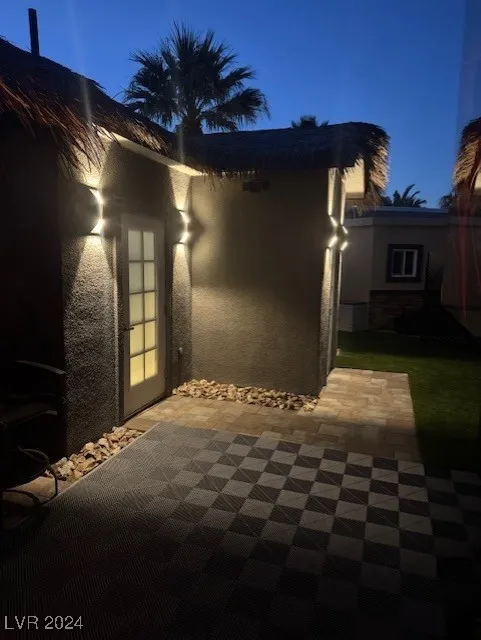 Located within the Class A Las Vegas Motorcoach Resort, this new construction south facing interior site is a gem! A palapa with roll down shades creates a great entertaining space with bar top seating, fire top table, TV and BBQ. A second structure encompasses a comfort station with shower being added by owner and a climate controlled storage area. The site has a lot of design elements and curb appeal that are a must see! OWNER WILL CARRY!