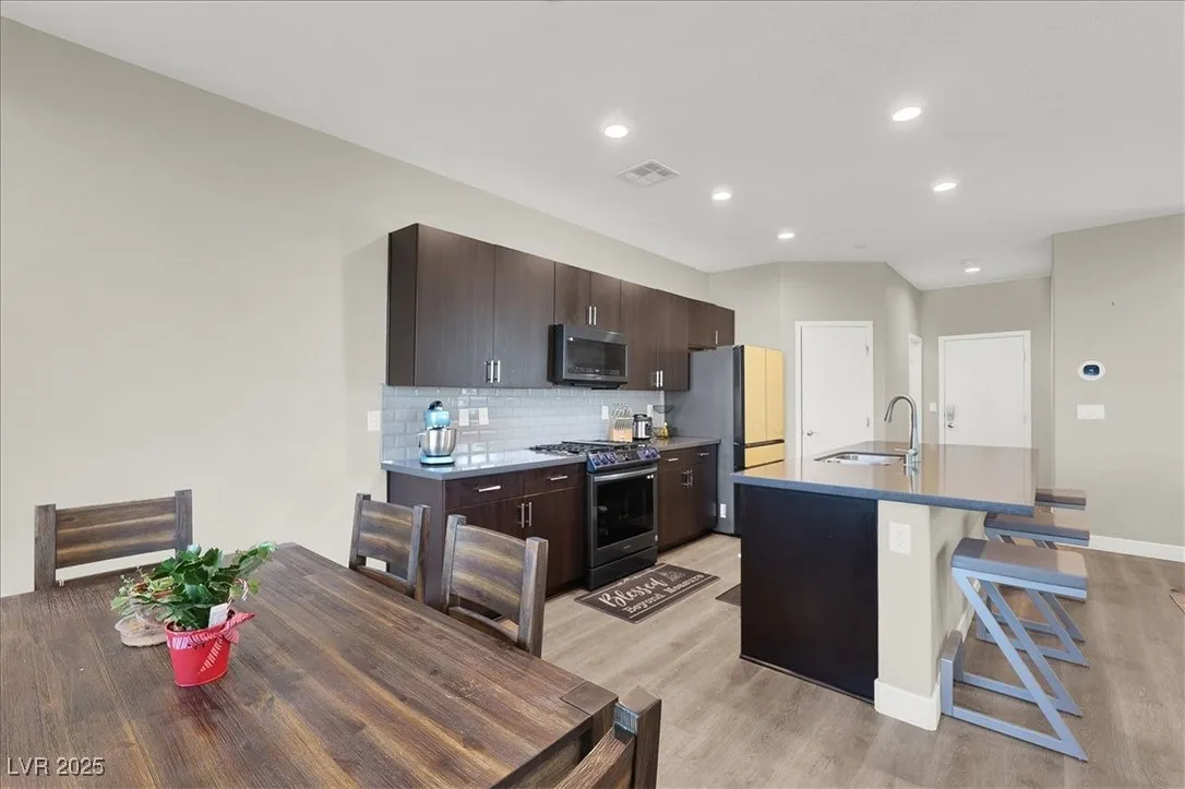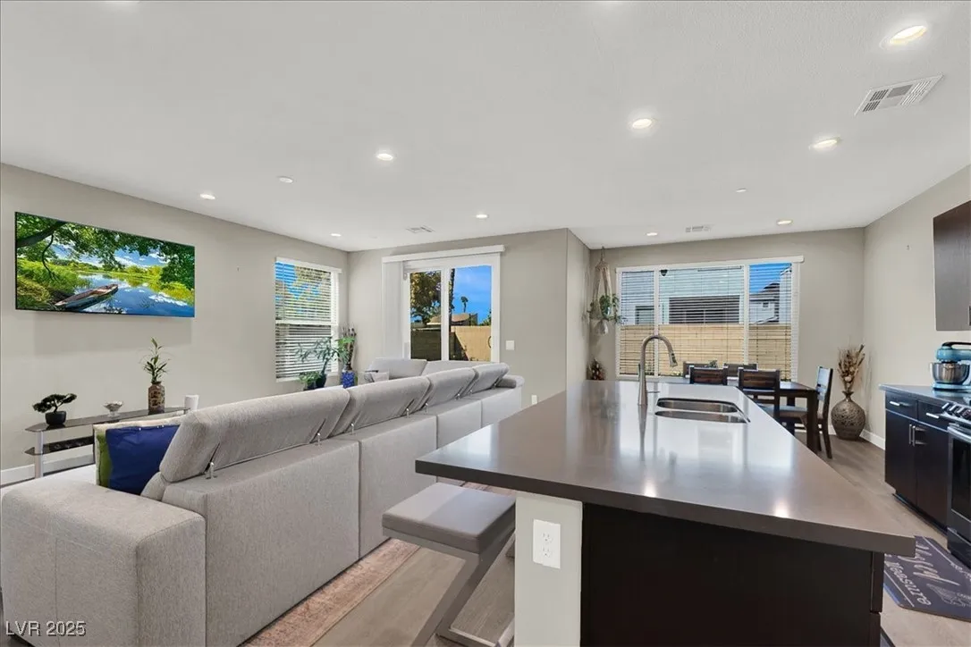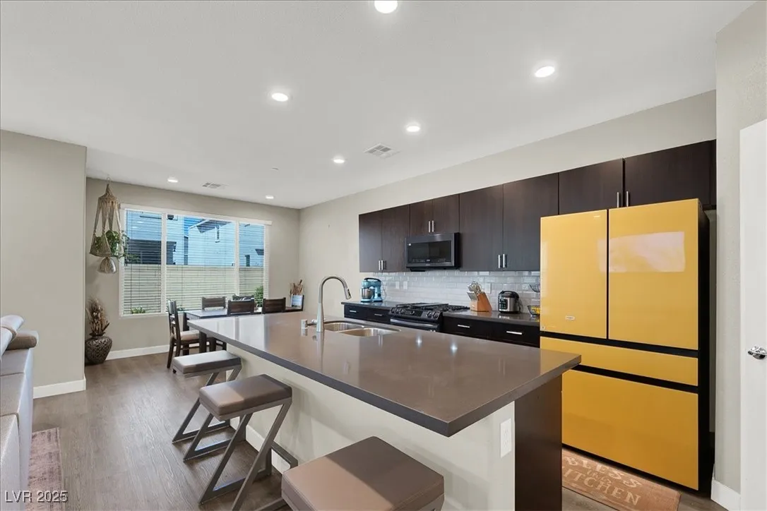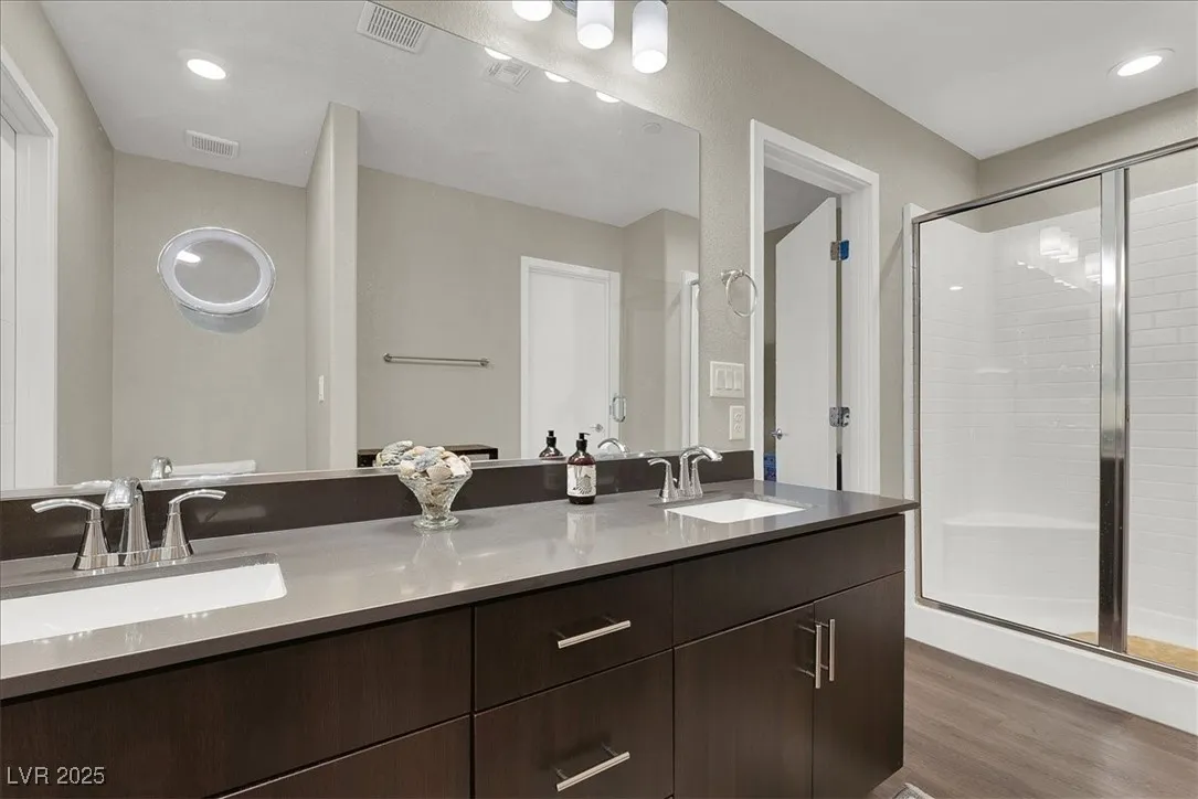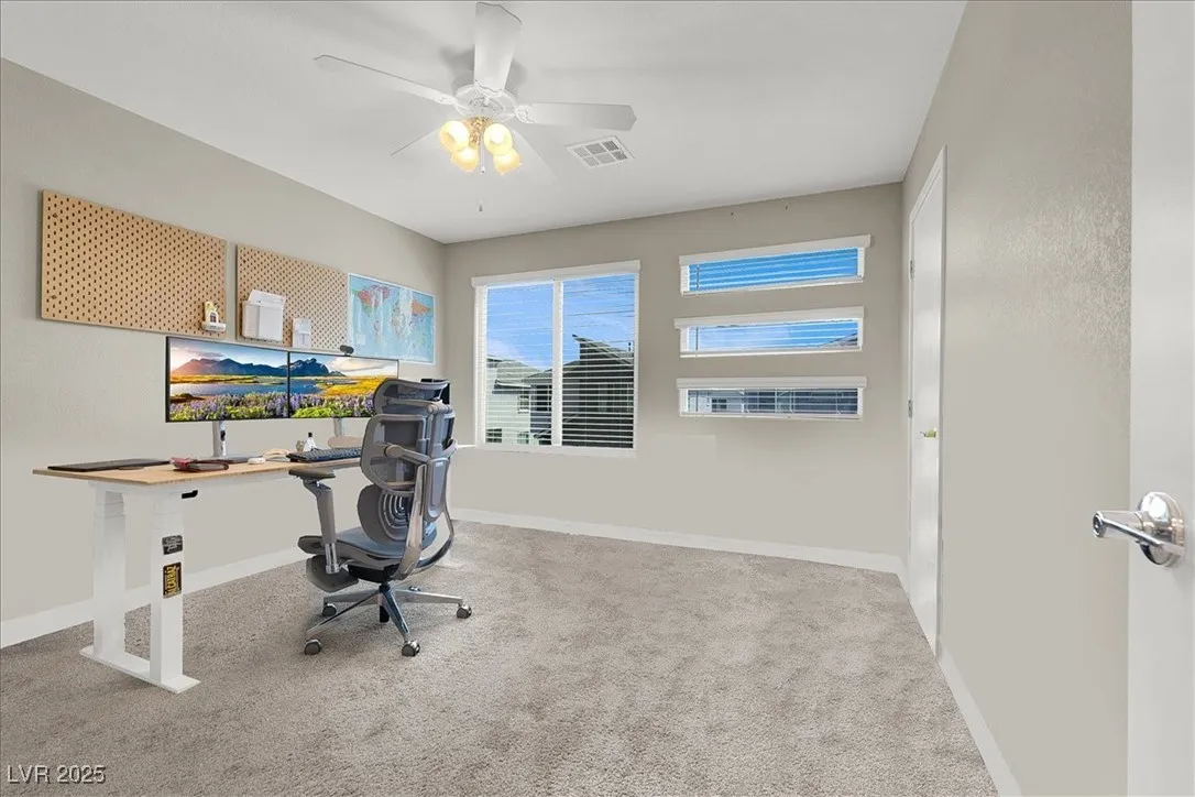 BEAUTIFULLY APPOINTED AND HIGHLY UPGRADED MODERN HOME. CENTRALLY LOCATED AND EASY ACCESS TO SCHOOLS, SHOPPING, FREEWAYS, AND WORLD-CLASS ENTERTAINMENT OF THE LAS VEGAS STRIP. OPEN FLOORPLAN WITH CUSTOM FLOORING AND PAINT SCHEMES THROUGHOUT. OVERSIZED FAMILY ROOM WITH CEILING FAN PRE-WIRES ADJACENT TO A CHEF’S DREAM GOURMET KITCHEN WITH LEVEL 3 FAUX QUARTX COUNTERTOPS, STAINLESS APPLIANCES, FLAT PANEL SHAKER CABINETS AND OVERSIZED ISLAND. CUSTOM HANDRAIL AND LOFT AREA EXTENDED INTO PRIMARY BEDROOM WITH WALK-OUT BALCONY. SPA-LIKE BATH WITH QUARTZ COUNTERTOPS AND SHOWER AND 2 ADDITIONAL LARGER BEDROOMS WITH CEILING FANS. PRIVATE REAR YARD WITH COVERED PATIO, DESERT LOW MAINTENANCE LANDSCAPE WITH SYNTHETIC GRASS, JUST THE PERFECT PLACE TO RELAX AFTER A LONG VEGAS AFTERNOON. ENJOY THE PARK AND POOL AREA ACROSS THE STREET ON THOSE HOT SUMMER VEGAS DAYS. CALL US TODAY THIS ONE WILL NOT LAST LONG.