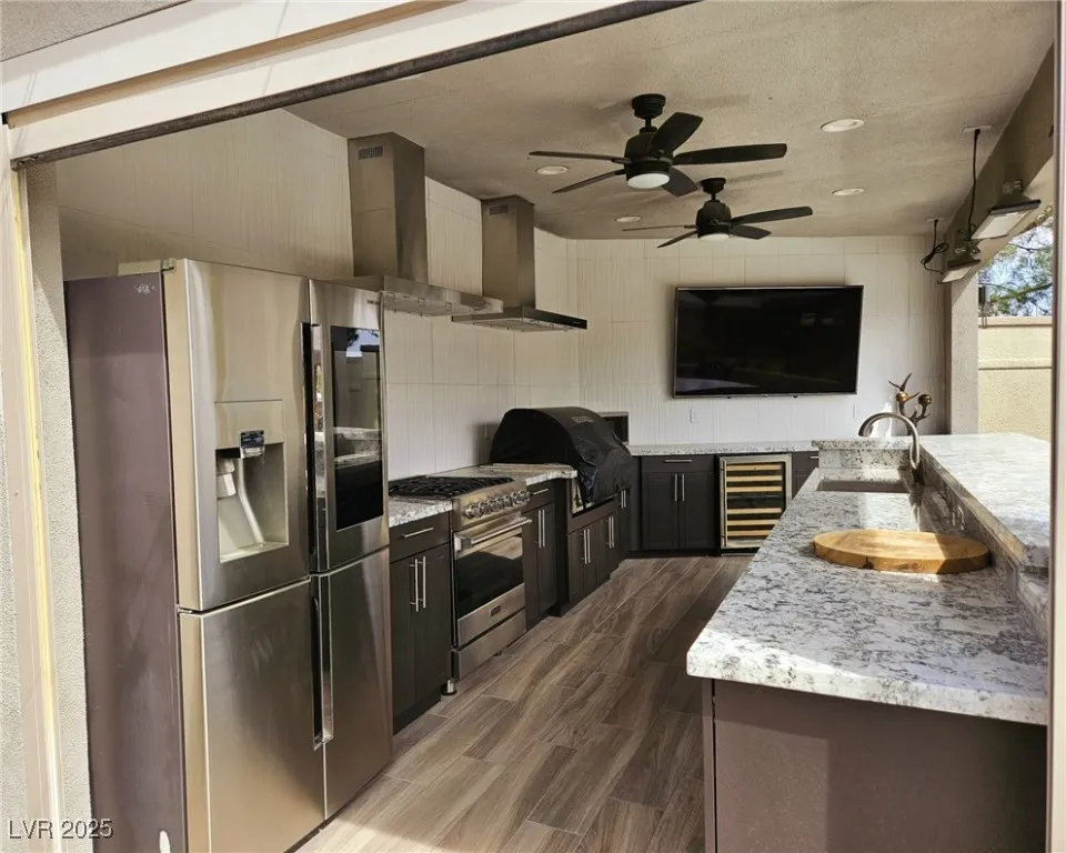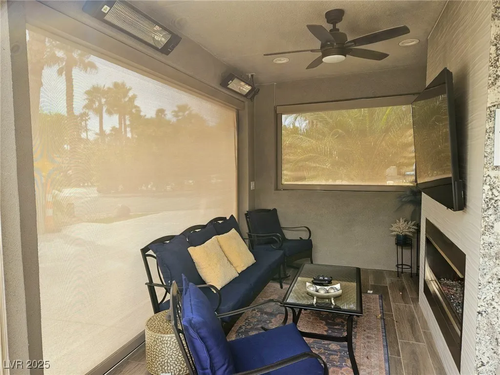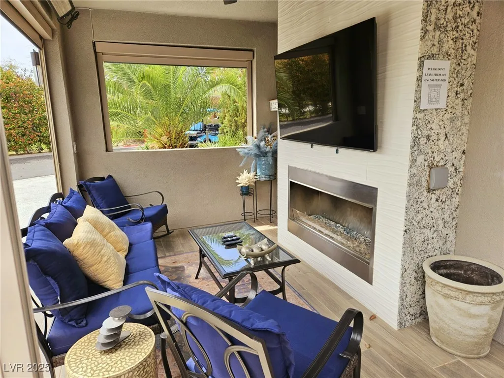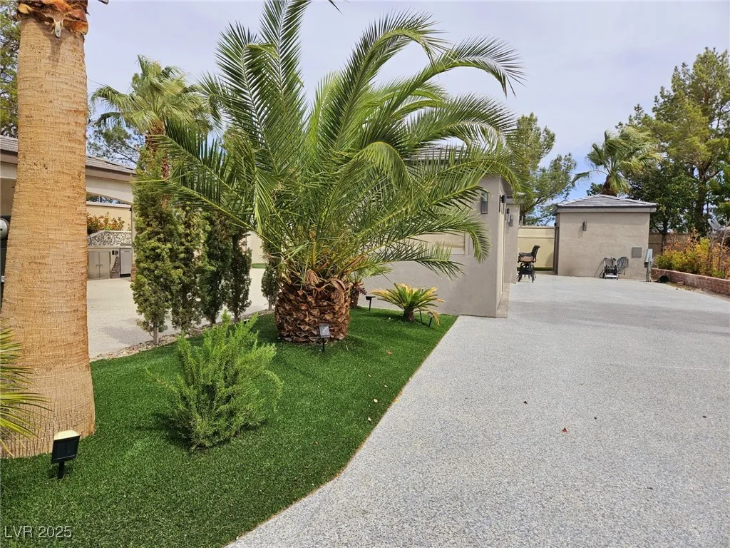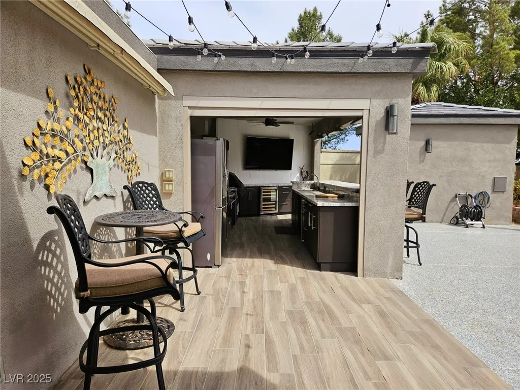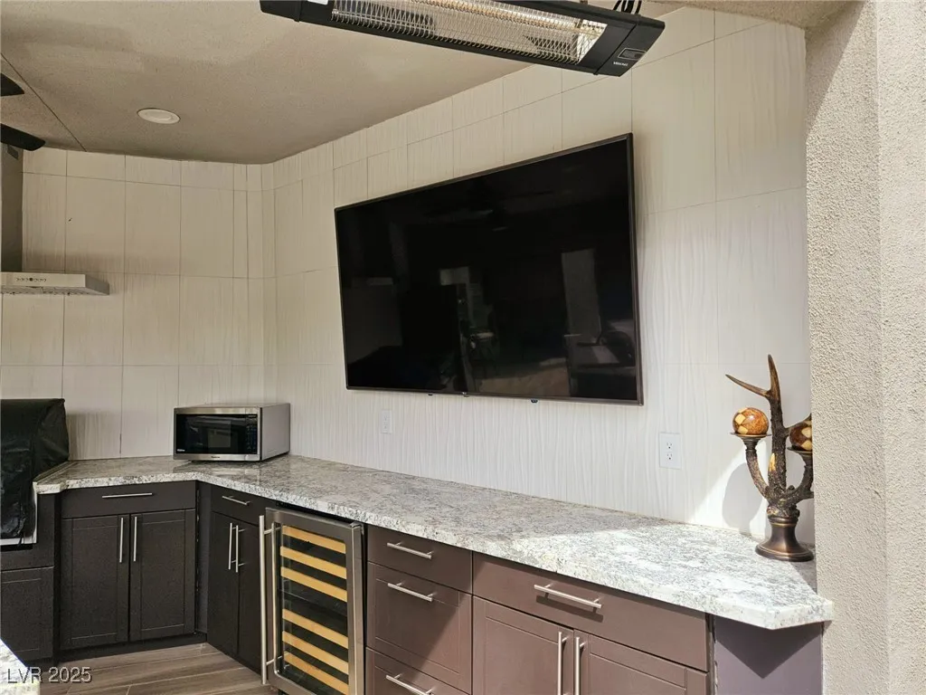 Located within the Class A Las Vegas Motorcoach Resort, this site is spectacular in every sense of the word! This site has it all including three hard roof structures, motorized shades, gorgeous stone, and granite, living room area with ceiling heaters, TV & fireplace, gourmet kitchen with ceiling heaters, fans, huge bar seating, buffet table, 80” TV, Viking appliances, Samsung refrigerator, motorized awning, comfort station, washer/dryer, water softener, storage room, upgraded flooring, and so much more!