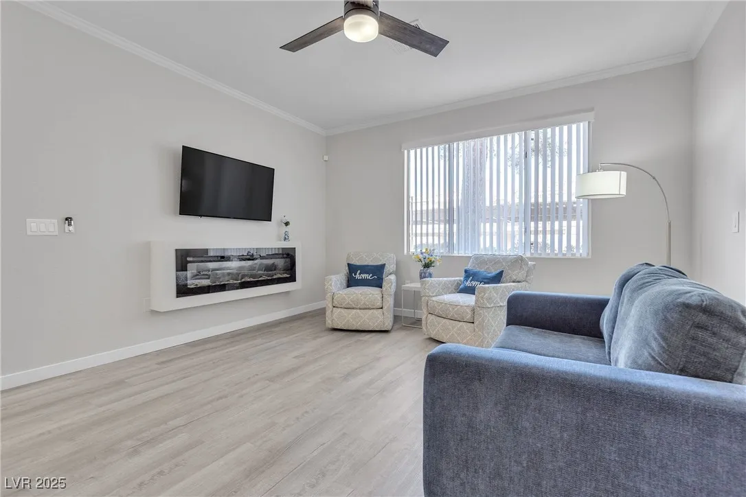 Investor Opportunity. Remodeled Condo in Coveted Seven Hills–Includes 1-Car Garage & Covered Carport! Welcome to this rare gem in the sought-after gated community of Avalon at Seven Hills! This bright and airy 1 BR-1 BA condo offers a spacious open layout, thoughtfully upgraded for modern living. Step inside to find fresh paint, crown molding, and a sleek electric fireplace adding warmth and style to the living area. The kitchen boasts an upgraded backsplash, reverse osmosis system, and plenty of space to entertain or enjoy cozy meals. Enjoy ground-floor access, your private garage, plus a covered carport—a rare combination! Avalon features resort-style pools, a fitness center, and clubhouse. Just steps away, find scenic walking trails, tennis and basketball courts, and playgrounds throughout Seven Hills. All this, just minutes from shopping, dining, Costco, and essentials. Don’t miss this opportunity to live in comfort and style in one of Henderson’s most desirable neighborhoods!