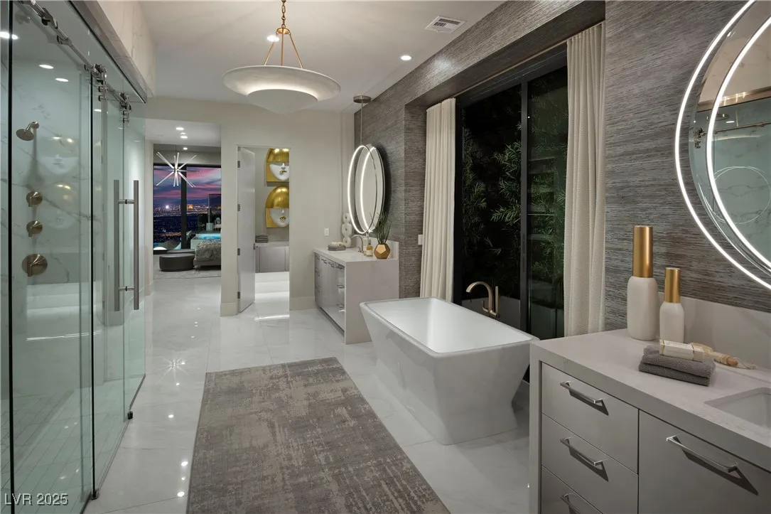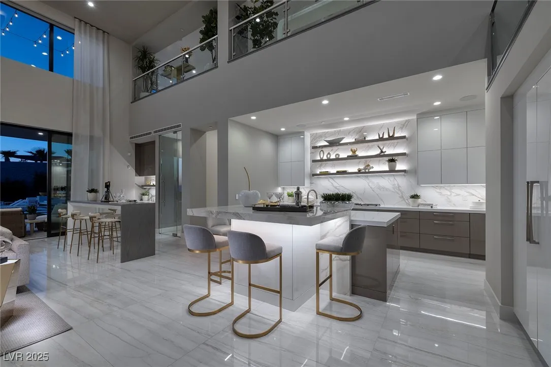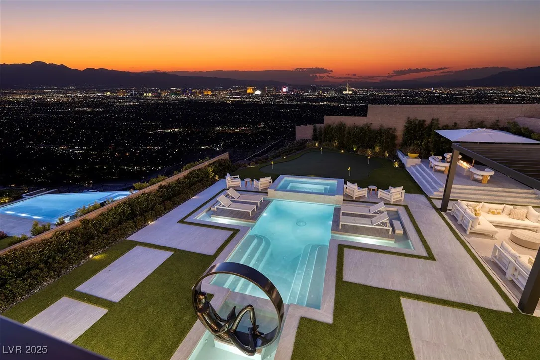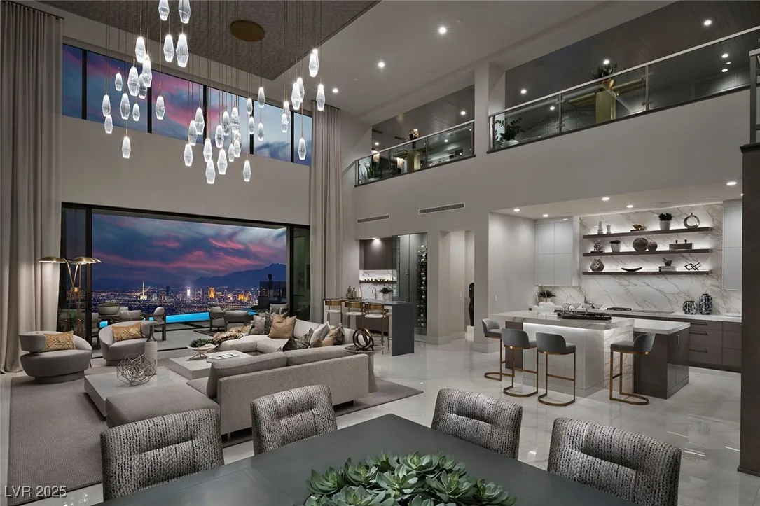 Discover this extraordinary home by award-winning Christopher Homes in our SkyVu Community, situated high on the mountainside in 24-hour guard gated MacDonald Highlands, home to the exclusive DragonRidge Golf Club. Sophisticated luxury living with breathtaking Las Vegas Strip views. This contemporary residence features 3 spacious bedrooms plus a private home office, perfect for today’s lifestyle. The chef’s dream kitchen is appointed with Wolf and Sub-Zero appliances, a prep kitchen, two dishwashers, and a climatized wine locker. A dramatic Skyloft with bar offers the ultimate entertainment space, while the wellness room with steam shower and sauna creates a spa-like retreat at home. Expansive indoor/outdoor living areas showcase striking architecture and seamless flow. A 3-car garage provides ample space for vehicles and storage. Designed for elegance, comfort, and function, this home is ideal for those who appreciate modern luxury with panoramic Strip views.