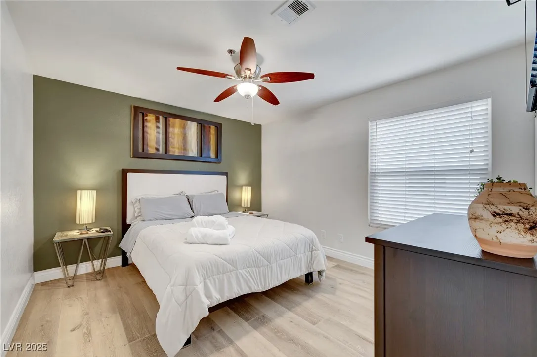 Fully remodeled second-floor condo in the heart of Las Vegas! This turnkey 2-bedroom, 2-bathroom unit is fully furnished, just minutes from the iconic Las Vegas Strip, Allegiant Stadium, and T-Mobile Arena. Step into a spacious living area adorned with chic furnishings, a modern kitchen boasting granite countertops, and a cozy dining nook perfect for entertaining. The bedrooms offer generous closet space and tasteful décor, ideal for relaxation or investment. Enjoy resort-style living with access to a sparkling pool, soothing spa, state-of-the-art fitness center, and gated security for peace of mind. Perfect for frequent visitors, investors, or full-time residents, this prime location ensures easy access to world-class shopping, dining, and entertainment. The HOA has approved short-term rentals, making this an excellent opportunity for income potential. Move-in ready with all essentials included—just pack your suitcase and embrace the Las Vegas lifestyle in this exquisite condo!