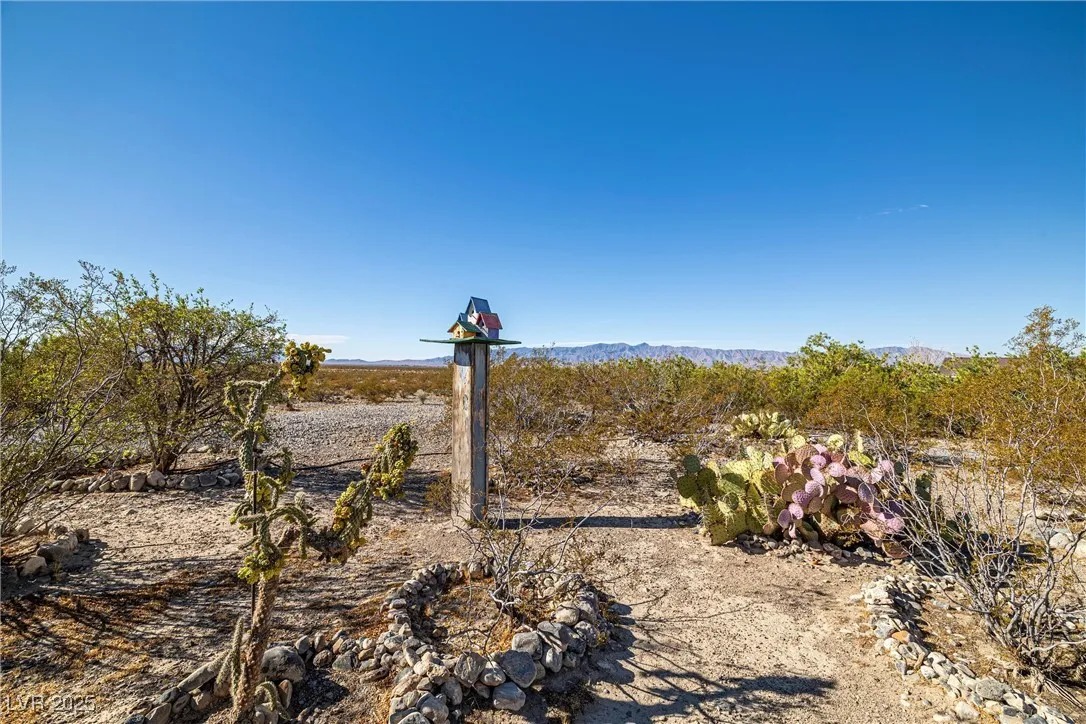 Ranch style home, 2 Acres in the lovely Roger’s Estates, just 35 minutes from Vegas! This home offers 2 Primary bedrooms, separate from each other. The larger of the two has a roomy bathroom with dual sinks, a garden tub, shower, separate toilet room & custom walk-in closet. ALL 3 bedrooms have french doors that open up to the Covered Patio. The 20×12 den has a split AC unit & shares a private courtyard with the spare bedroom. Home has updated Quartz countertops, upgraded 2×6 construction, R30 walls, R19 ceiling, R30 blown in attic, & dual attic fans. Separate Laundry room; closet, cabinets, extra Fridge. 35×20 Covered RV Parking pad; 30/50 amp & 120 hookup along with full water & septic hookups! The exterior offers Security Doors, full length covered patio, 2 attached Awnings, Private courtyard on the front/side of the home, Solar shades, 8×40 CONEX, 10×20 Shed, Firepit & sitting area overlooking the Pahrump Valley. This home comes with the Corner acre lot next door with WATER RIGHTS.
