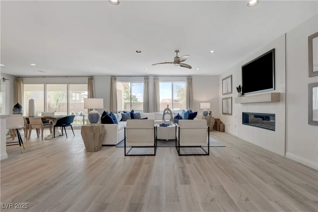This absolutely gorgeous MODEL Home is fully furnished and fully landscaped front and back. Never lived in! Beautiful patio cover with pavers. This home has a multi 12’ slider in the nook area making it great for entertaining. This home also features a finished office with 2 working areas and Glass sliding doors off of the kitchen area! Gorgeous! It has a wide open loft that is open to the entryway. Too many upgrades to list.!! A lot of designer features with tile walls and gorgeous granite counters!! Large kitchen island with walk-in pantry and open floorplan. This home also features 78” gas fireplace in the great room, great for coziness!! Upgraded flooring throughout and a valet in the mud area. Comes with all upgraded stainless steel appliances including washer, dryer and refrigerator! Spacious backyard with no neighbors, strip and mountain views and fire pit!