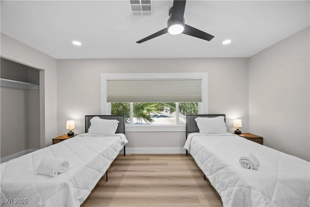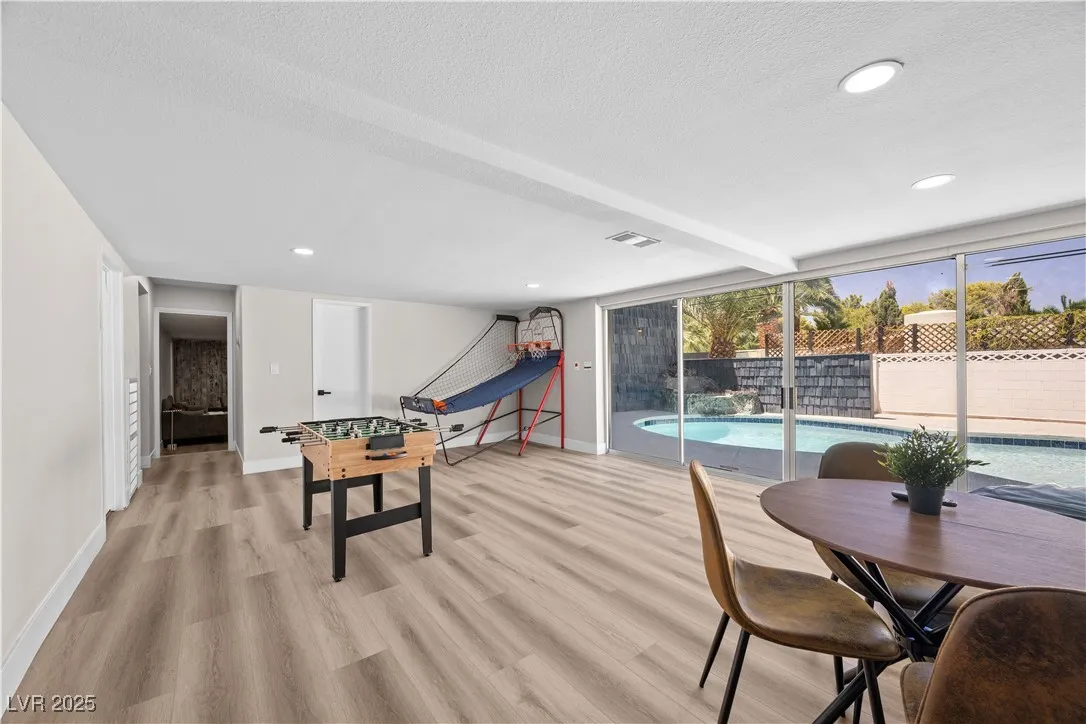 Luxury Golf Course Rental with Pool in Paradise Palms! Beautifully updated and fully furnished, this 4-bedroom + office/game room, 4-bathroom home sits on 100 feet of frontage overlooking the 13th fairway of Las Vegas National Golf Course! The chef’s kitchen features a waterfall island, quartz countertops, premium stainless appliances, and abundant cabinetry, opening to spacious living areas ideal for entertaining. A versatile room offers space for an office, den, or game room with direct pool access. The primary suite includes a spa-inspired bath with soaking tub, dual vanities, and walk-in shower. Outside, enjoy a sparkling pool, private patio, and unobstructed golf course views. Rich Vegas history—this neighborhood was featured in the movie Casino and this particular home enjoyed occupants like Bucky St. Angelo (portrayed in Casino), legendary singer Dionne Warwick, and comedian Foster Brooks. Minutes from the World Famous Strip!