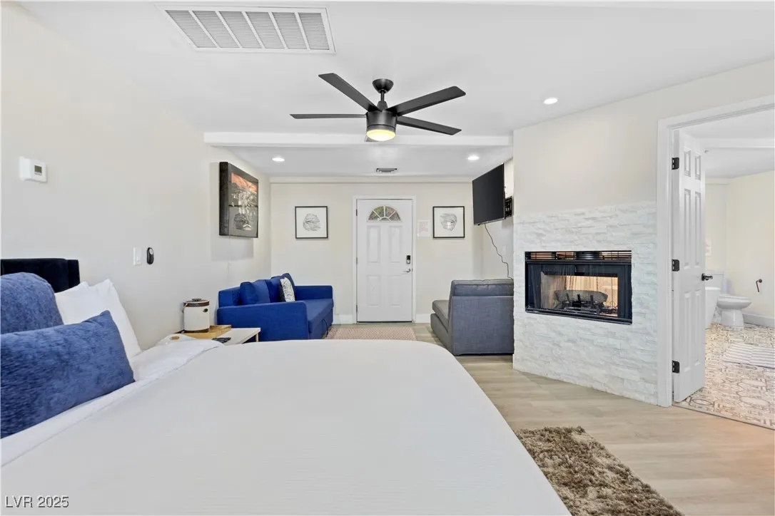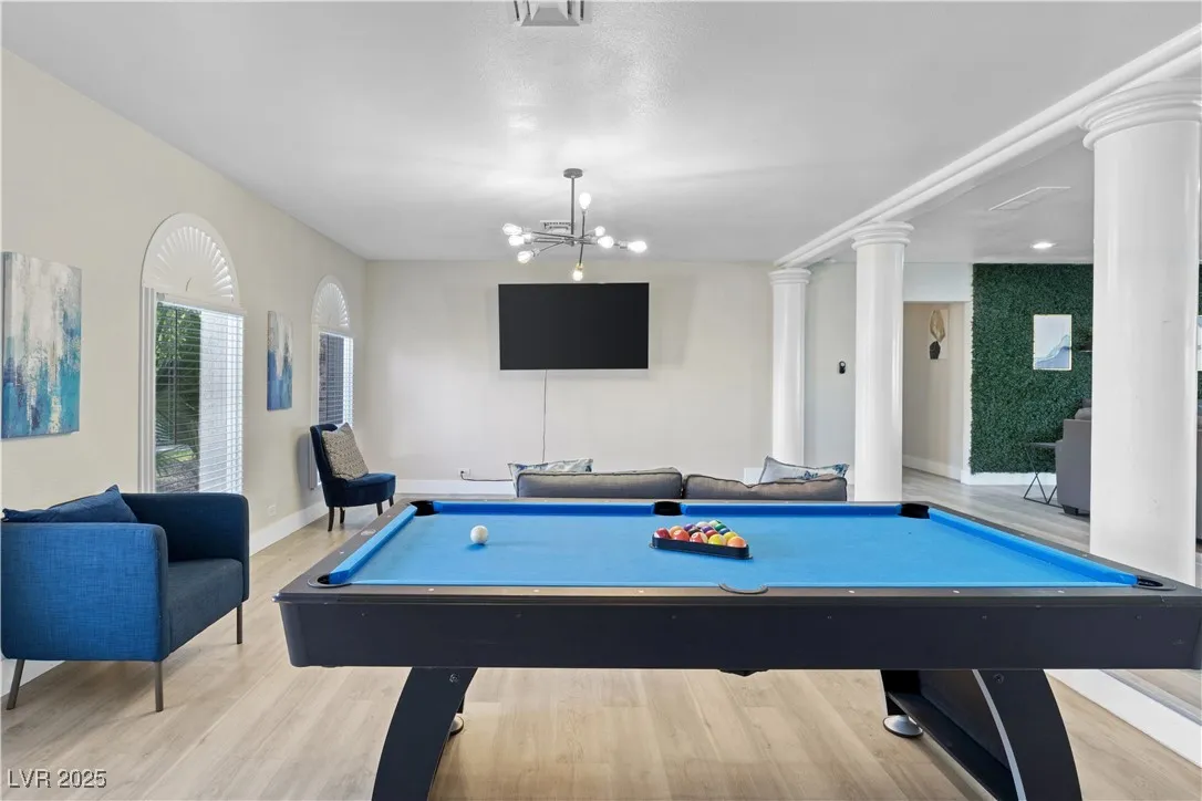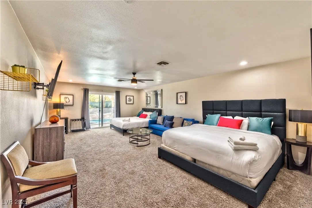Rare gated 1.29-acre Las Vegas oasis in horse-zoned area, just 15 min from the Strip! Over 5,185 sq. ft. of stunningly remodeled living space, incl. a private-entry casita w/2-sided fireplace & spa bath. The primary suite offers private pool access & a spa-inspired bath. 48 swaying palms frame the circular drive & lush front lawn, setting the stage for the resort-style heated pool & spa. 2020 upgrades shine in the chef’s kitchen, luxe baths, & spacious open living areas. Expansive backyard is a blank canvas for horses, farming, gardens, or custom outdoor entertainment. Ample parking for RVs/toys, and no HOA. Enjoy peace & privacy on a secluded street while staying close to Sunset Park, McCarran Airport, shopping, dining, and entertainment. One-of-a-kind property delivers unmatched space, luxury, and potential!