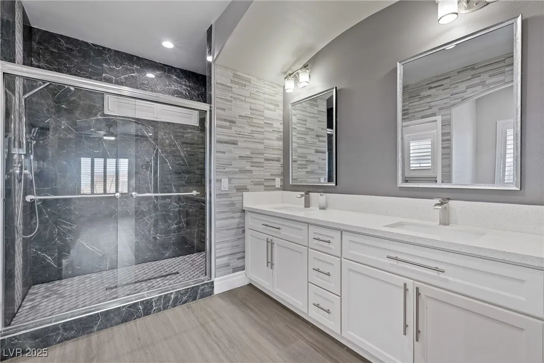 Welcome to your dream home in Pahrump! This like-new 4-bedroom, 3-bath residence features a spacious 2,267 sq. ft. layout with modern upgrades. The fourth bedroom includes a private bathroom and entrance, while the primary bath boasts a luxurious jacuzzi tub for ultimate relaxation. Ceiling fans provide year-round comfort, and the oversized 732 sq. ft. garage offers ample storage. Enjoy covered RV parking with all necessary hookups—water, sewer, and electricity. Horse lovers will appreciate the 4-stall barn with a shower area, plus a cozy dog house with a mini-split AC unit for your pets. Set on over an acre of fully fenced land with a block wall worth tens of thousands, this property ensures privacy and security, along with a private water well and propane tank. Don’t miss this incredible opportunity—schedule your showing today and discover the perfect blend of comfort and country living!