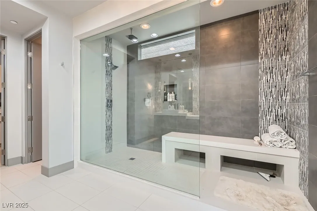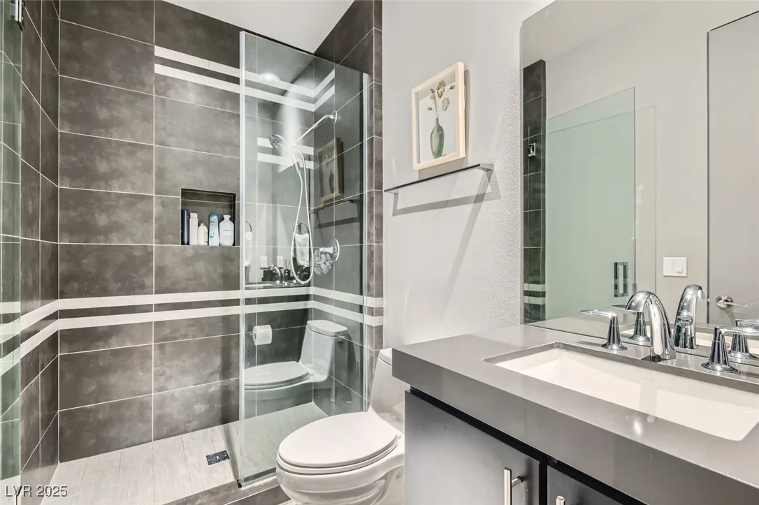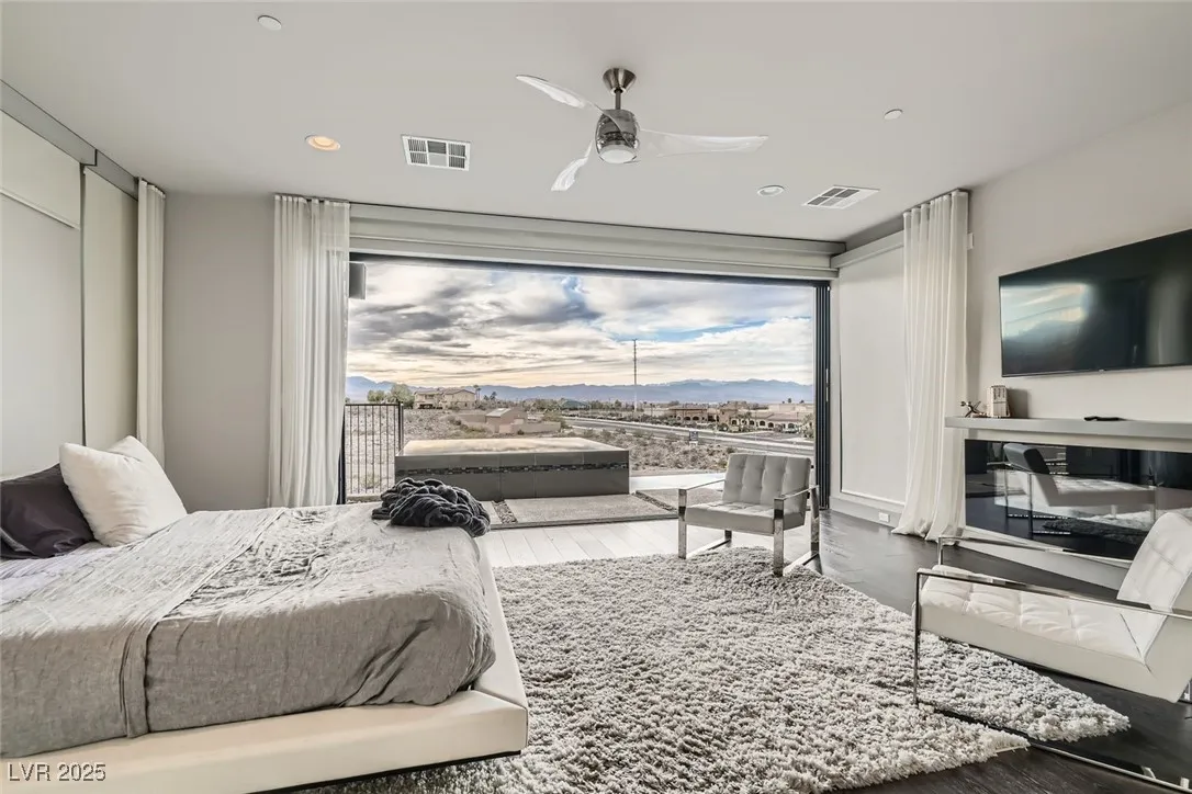 Experience luxury living in this fully furnished Blue Heron masterpiece in the gated Sky Terrace community, offering breathtaking Strip views and seamless indoor-outdoor living. A floating staircase leads to a loft with a built-in wet bar, while the gourmet kitchen boasts an L-shaped counter, central island, sleek cabinetry, and high-end Kitchenaid appliances, including a built-in espresso machine. The main floor primary suite opens to the infinity-edge pool and zero gravity spa, the bath featuring dual vanities, an oversized shower, and a custom walk-in closet. Enjoy a built-in BBQ, fire pit, pool table, and stunning infinity-edge pool and zero gravity spa outside. For ultimate security, the home features 24/7 monitored cameras, shatterproof window film, and electric shades. Live elevated in this exclusive Las Vegas retreat. Ideal location with easy access to Harry Reed International Airport, the Las Vegas strip, and excellent shopping and dining. *No Pets Allowed*