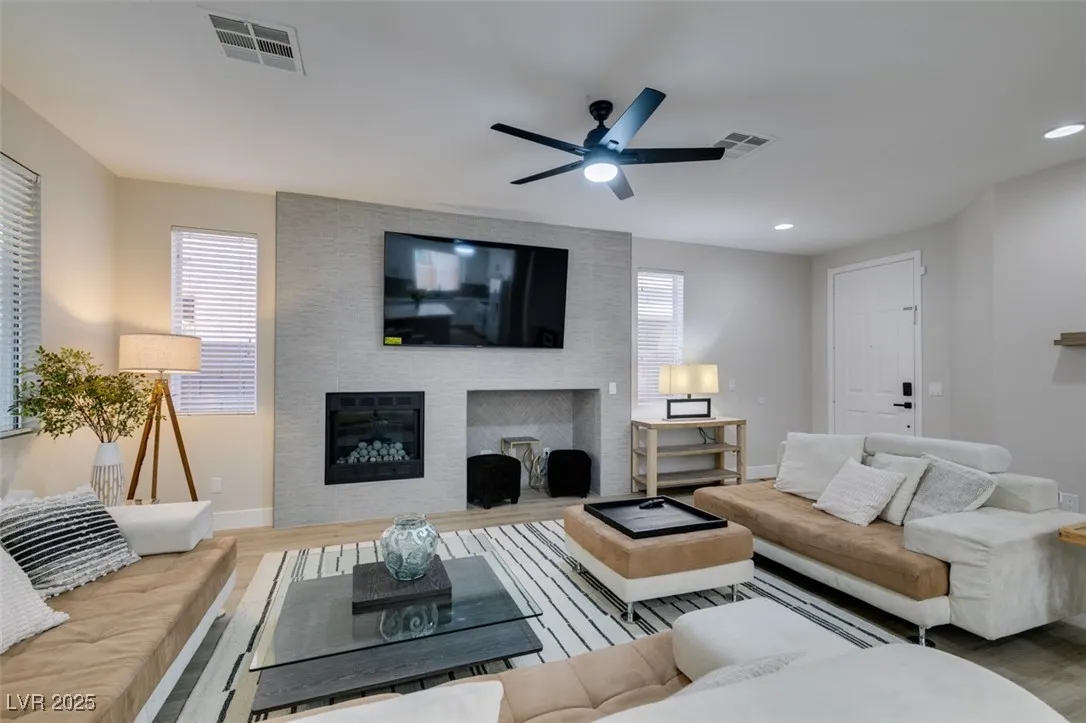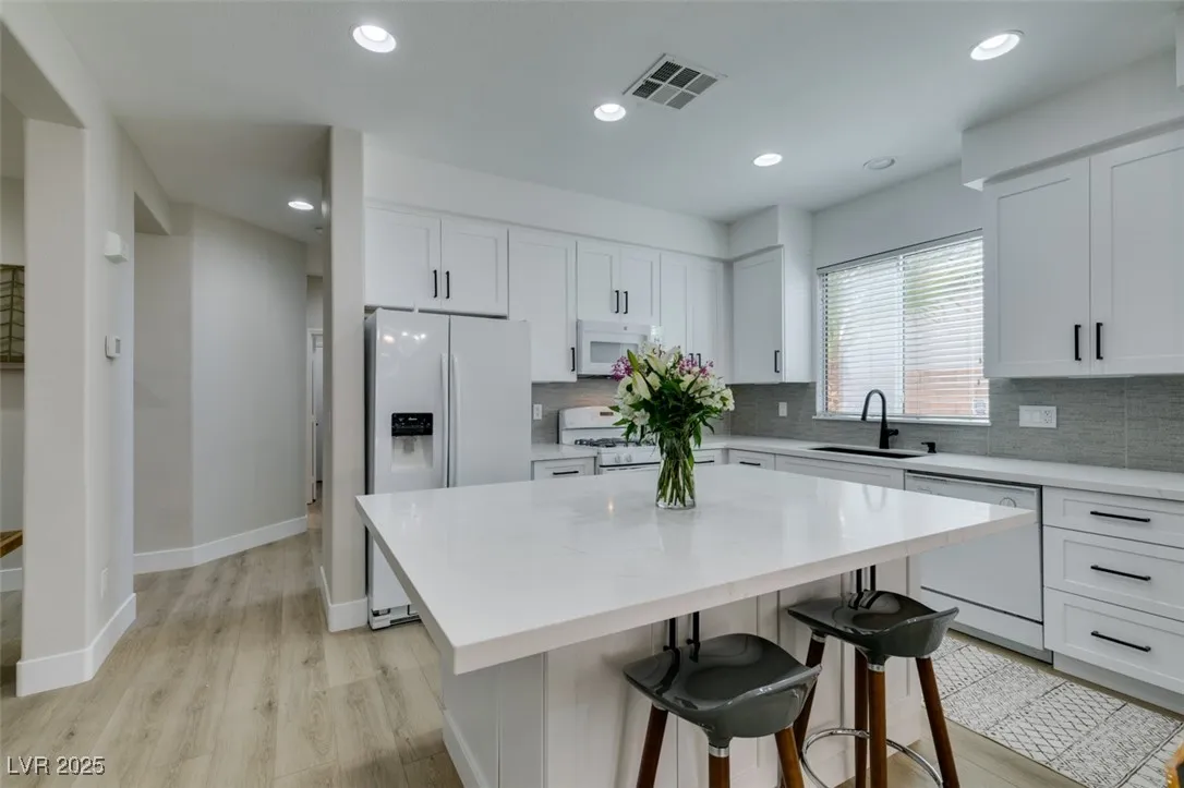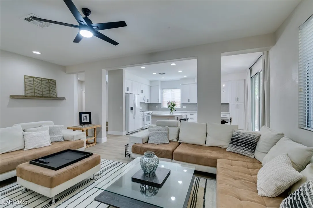 AVAILABLE 5/18/26-8/13/26. FULLY FURNISHED, FULLY RENOVATED HOME! Wide open floor plan with the kitchen/eating area overlooking the great rm! Quartz tops, island breakfast bar, lots of cabinets, all appliances included, ceiling fans/lights thru out, huge great room with fireplace, large primary bedroom, sep shower and tub in the primary bath with walk in closet/mirrored doors, 2 more bed with 1 bath up – ceiling fans/lights AND 1 bed, 3/4 bath downstairs – fan/light, 2-tone paint, luxury vinyl through out/5′ baseboards, laundry with pedestal front loader machines and cabinet, covered patio, garage storage cabinets, courtyard, 2 car garage. Vista ‘s Park around the corner! Costco/shopping, Red Rock Casino and National Park, I215 all close by! King bed, 3 queen beds, x-twin bed, all linens, all kitchen wear, smart TV’s all br and great rm.