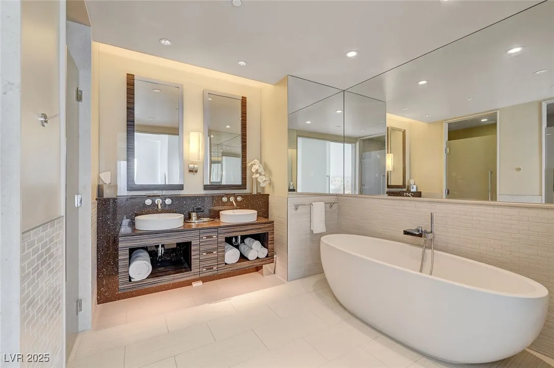 MOVE IN TO DESIGNER LUXURY!! WALDORF ASTORIA RARELY AVAILABLE CORNER “05” RESIDENCE… POSITIONED 12 FLOORS DIRECTLY ABOVE THE WALDORF UPPER LOBBY FEATURING THE MOST SOUGHT AFTER VIEWS OF THE LAS VEGAS STRIP & PANORAMIC VIEWS OF THE CITY FROM THIS MOST PREFERRED VANTAGE HEIGHT!! ABSOLUTELY EXQUISITE AND CONTEMPORARY DESIGN…WILL BE BEAUTIFULLY FURNISHED. OFFERING PERFECT FUNCTIONALITY & VISUAL APPEAL. BREATHTAKING FINISHES w/ REFINISHED HARDWOOD FLOORING, CUSTOM LIGHTING, NEW CARPET & PAINT, CUSTOM CLOSETS WITH THE FINEST OF FINISHES. NOTHING COMPARES. TRULY THE BEST LOCATION & VIEWS IN THE ENTIRE BUILDING. The property is currently undergoing an extensive enhancement, including redesigned common areas and upgraded amenities. These improvements are set to further elevate the building’s stature and enrich the overall living experience!