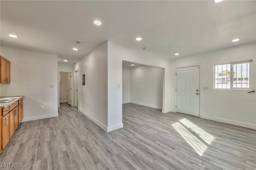 Two weeks free rent with approved application. Welcome to this beautifully updated studio located in the heart of downtown Las Vegas. This thoughtfully designed space features a bright and open floor plan perfect for comfortable city living. Enjoy an upgraded kitchen with a charming garden window that brings in natural light recessed lighting and ample cabinet space. New flooring flows throughout the entire unit creating a clean and contemporary look. The spacious living area includes a ceiling fan with light fixture for added comfort and style. The bathroom has been fully refreshed with a newly tiled walk-in shower and sleek single vanity. This studio is ideal for anyone looking to live close to the excitement of downtown just minutes from Fremont Street dining entertainment and public transit. Experience the convenience and energy of downtown living in a move-in-ready space. Take advantage of the free rent incentive and schedule your tour today this one will not last.