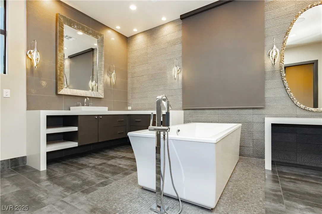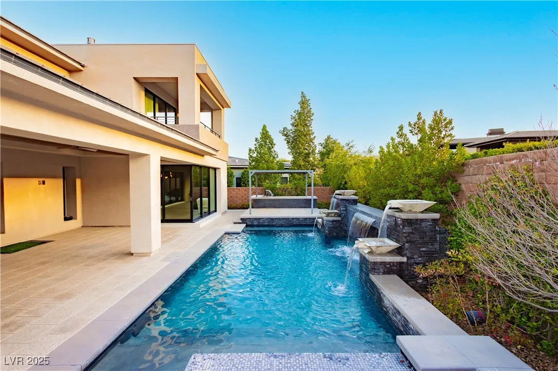 Possibly The Best home in Sterling Ridge @ The Ridges. No expense spared, with amazing designer finishes throughout. Large stylish kitchen with Center Island. Top-of-the-line Subzero and Wolf Appliances, solid counter tops and European style cabinetry. Bright, Open Spacious Great Room with double height ceilings, as well as a large pocketing glass walls to give you a seamless California in-door out-door lifestyle. Additional highlights include a big wet bar with seating for 5, wine cellar, a designer powder room for guests and a modern floating staircase with fountains at the base, adding a relaxing vibe. The Primary Suite is to die for, with large walk-in closet, retreat/sitting room, separate from all other rooms and offers a private balcony! One large guest bedroom with full bath attached on the main level. Oversized Yard with a long driveway for extra parking, beautiful covered patios overlooking the stylish swimming pool, spa, Summer Kitchen/BBQ, and sports court on the side yard.