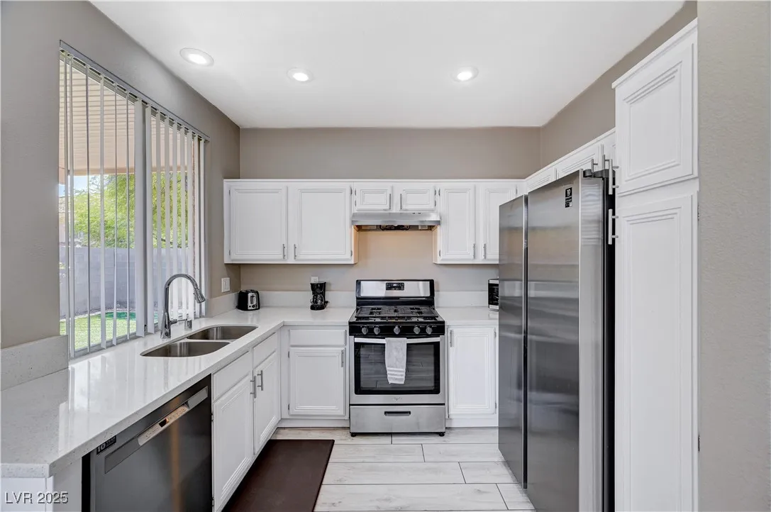 Beautiful fully furnished three bedroom two bathroom single-story home in the heart of Summerlin. Home features stainless steel appliances, granite countertops, upgraded tile floors and a fully fenced back yard. All housewares, linens, utilities, TV streaming service, and WiFi are included with your stay. Easy access to the freeway, minutes from Red Rock Casino and downtown Summerlin with shopping, dining and parks.