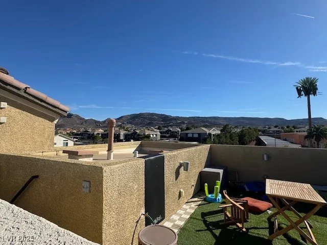 $1000 off 1st months rent!! Experience Elegance in this elevated tri-level living in this gated community, ideally positioned on a raised homesite overlooking the city and close to Reunion Trails Park. The rooftop terrace boasts sweeping 360° views of the Las Vegas Strip, surrounding mountains, park scenery, and spectacular sunsets, perfect for entertaining or relaxing. The top floor features a open layout with a spacious great room, dining area, and upgraded kitchen with custom cabinetry, built-in appliances, and a striking-thick granite island, plus a guest powder room. All bedrooms have their own private ensuite baths and walk-in closets. Additional highlights include a laundry room with premium washer and dryer, attached two-car garage w/ tons of overhead storage, and tankless water heater. Community amenities include a private park, beach volleyball court, horseshoe pit, and BBQ areas, all conveniently located near shopping, dining, theaters, and premier hiking and biking trails.