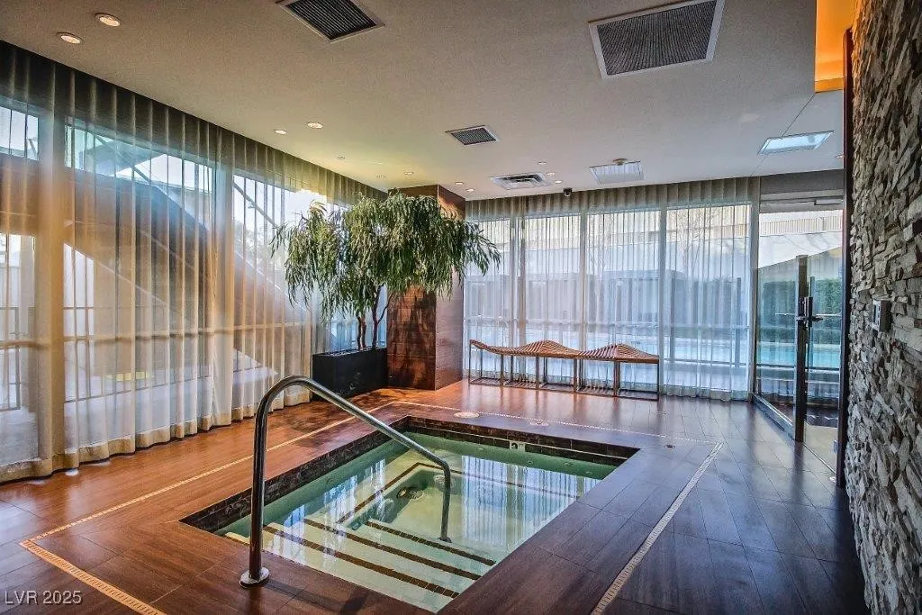 Luxurious High-Rise Living at The Martin. Amazing Views of the Strip, Mountains and Sunset with Floor to Ceiling Windows from this 10th-floor corner unit. This one bedroom (possible 2 bedroom) unit features Stainless Steel Appliances, Gourmet kitchen, with Large Balcony including hardwood floors. Amenities include pool, spa, massage rooms, valet, concierge, 24-hour concierge service and more!. Located in the heart of Las Vegas.