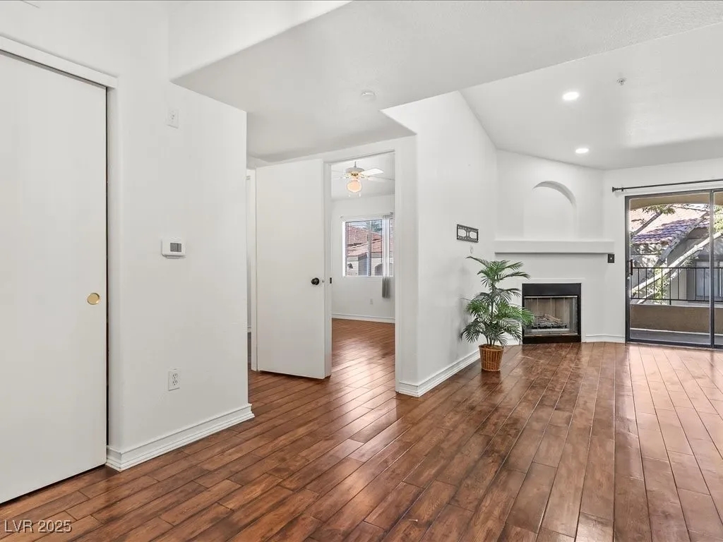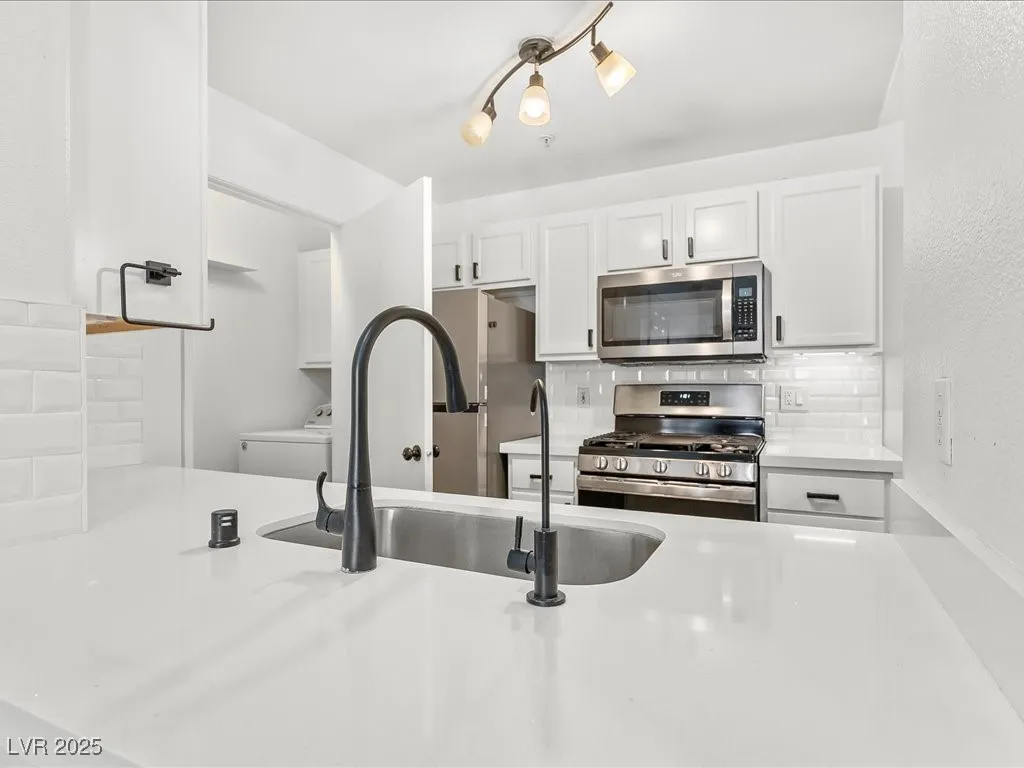 Welcome to this beautifully maintained second-floor condo offering the perfect blend of comfort, style, and convenience. Ideally located near restaurants, schools, hospitals, and major shopping centers, with easy access to I-215 and I-15 for effortless commuting. The modern gourmet kitchen features quartz countertops extended at the sink to create a functional breakfast bar, upgraded cabinet and door hardware, stainless steel appliances, and a brand-new refrigerator—perfect for both everyday living and entertaining. Step outside to a private, shaded balcony surrounded by mature trees, creating a peaceful retreat—the perfect spot to relax and enjoy your morning cup of coffee. Enjoy a resort-style community with exceptional amenities, including a sparkling pool and spa, a clubhouse with a recreation room, a fitness center, and a barbecue area. Surrounded by nearby parks and scenic hiking trails, this condo offers an active yet relaxing lifestyle in a highly desirable location.