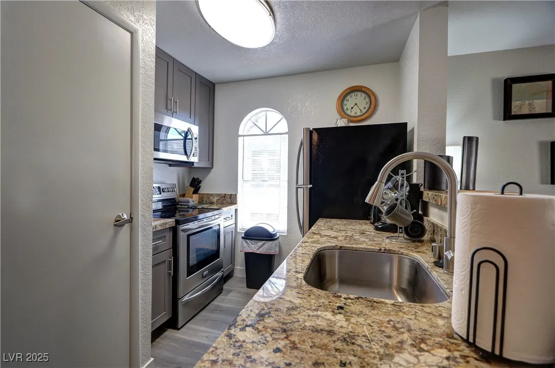 Comfortable, fully furnished 1-bedroom, 1-bath condo in a gated community. Located on the first floor for easy access, it features stainless steel appliances, granite countertops, a dining nook, and a breakfast bar. Residents can enjoy the community pool during summer. Conveniently close to dining and shopping in Chinatown and on the Strip, this turnkey property includes internet and a monthly utility allowance in the rent, with cable possibly included. It offers all essentials for a comfortable stay.