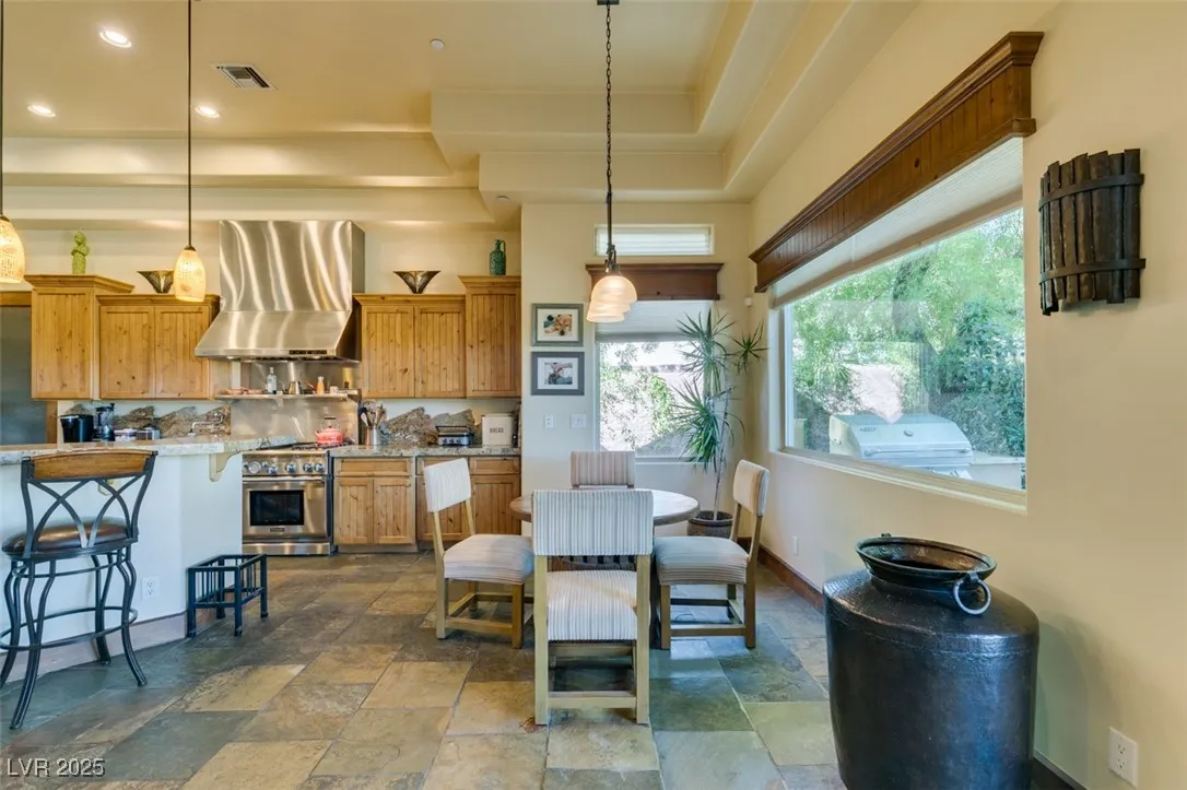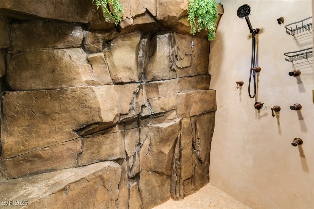 Luxury Single-Story Home in Guard-Gated MacDonald Highlands. This stunning single-story residence spans 4,626 sq. ft. and features 5 bedrooms, 5 baths, and a 3-car garage—offering elegance, privacy, and comfort in one of Henderson’s most prestigious neighborhoods. Expansive open-concept floor plan with soaring ceilings & natural light, Gourmet kitchen, Custom cabinetry, granite countertops, premium stainless-steel appliances & a large center island—perfect for entertaining. Spacious family room with large picture windows overlooking the resort-style backyard. Primary featuring Fireplace, Spa-inspired Bath w/ soaking tub, & glass-enclosed Shower/ Sauna. Lagoon pool w/ natural rock features, Covered patio & shaded lounging areas for outdoor dining & relaxation, Lush, mature landscaping offering privacy & serenity, 3 car garage, 24-hour guard-gated access. Experience Sophistication, security & comfort—this home is luxury living in MacDonald Highlands.