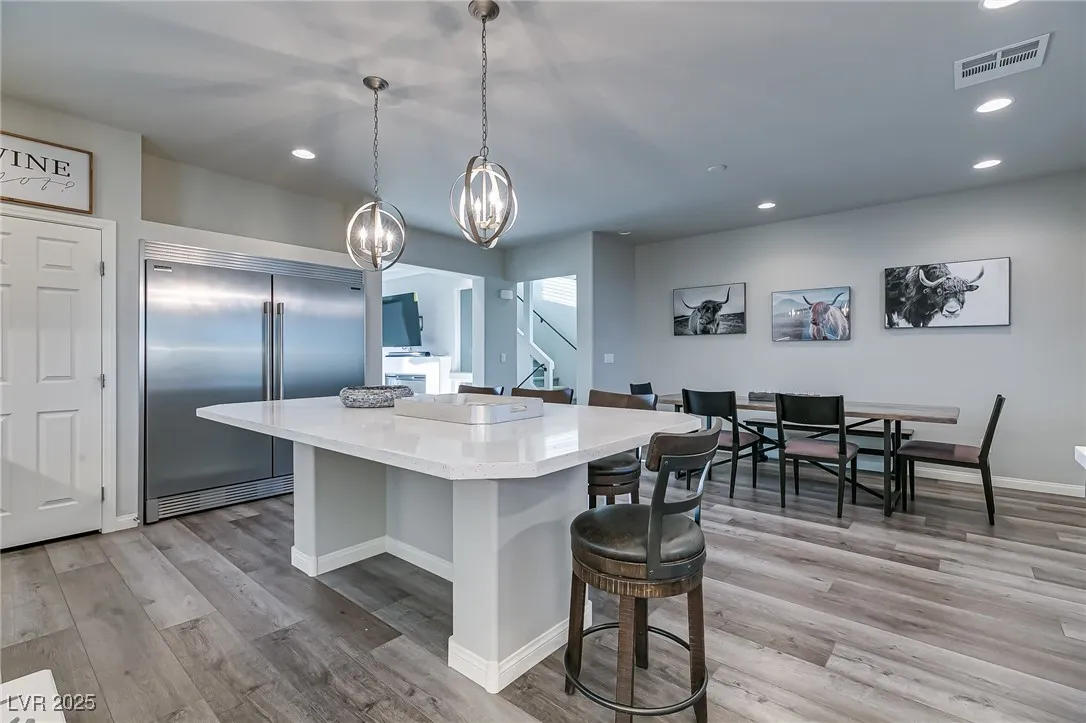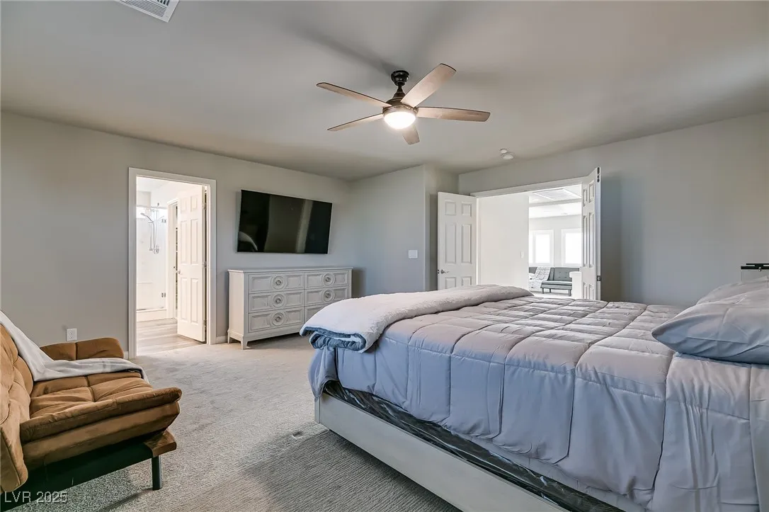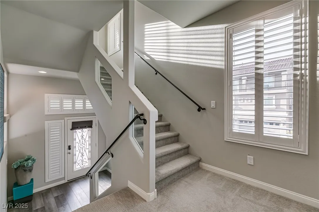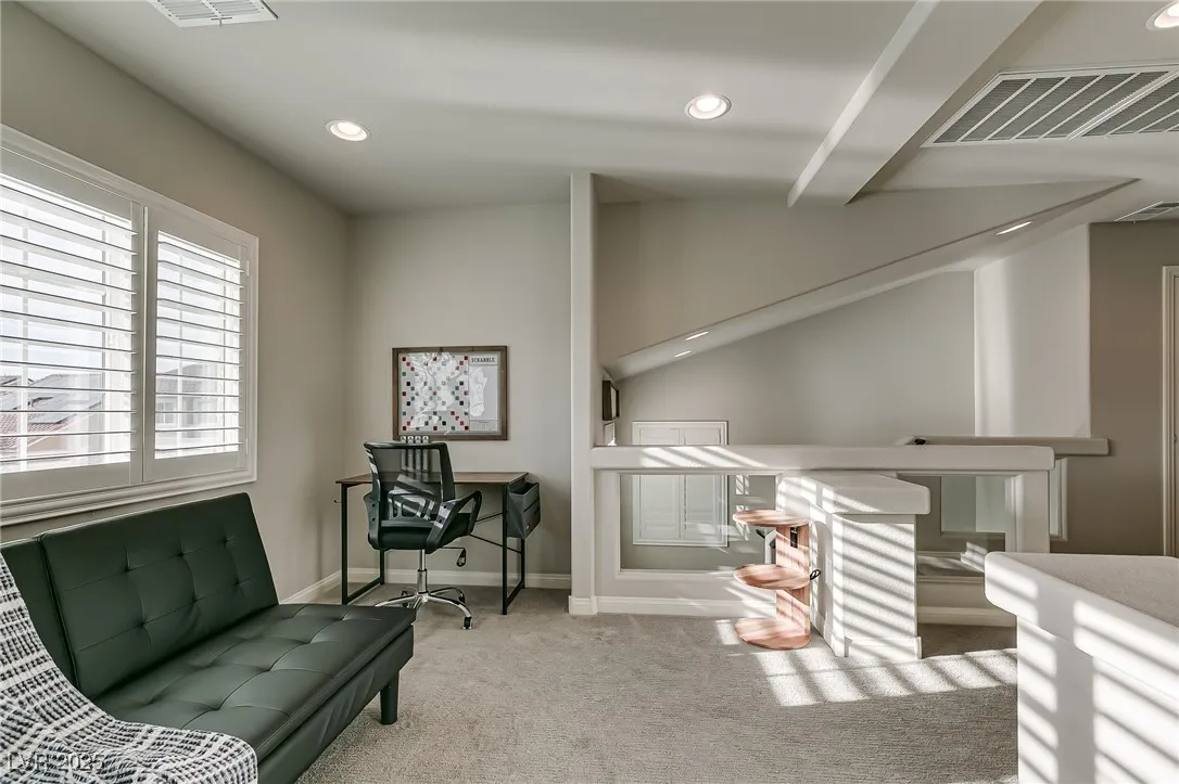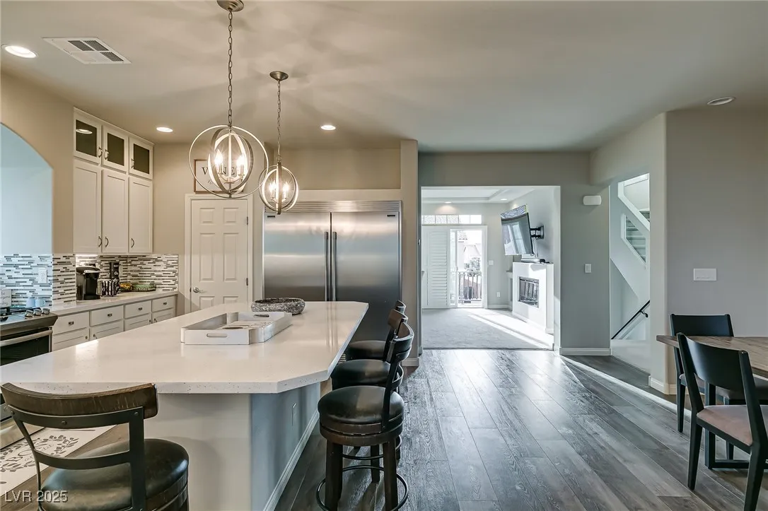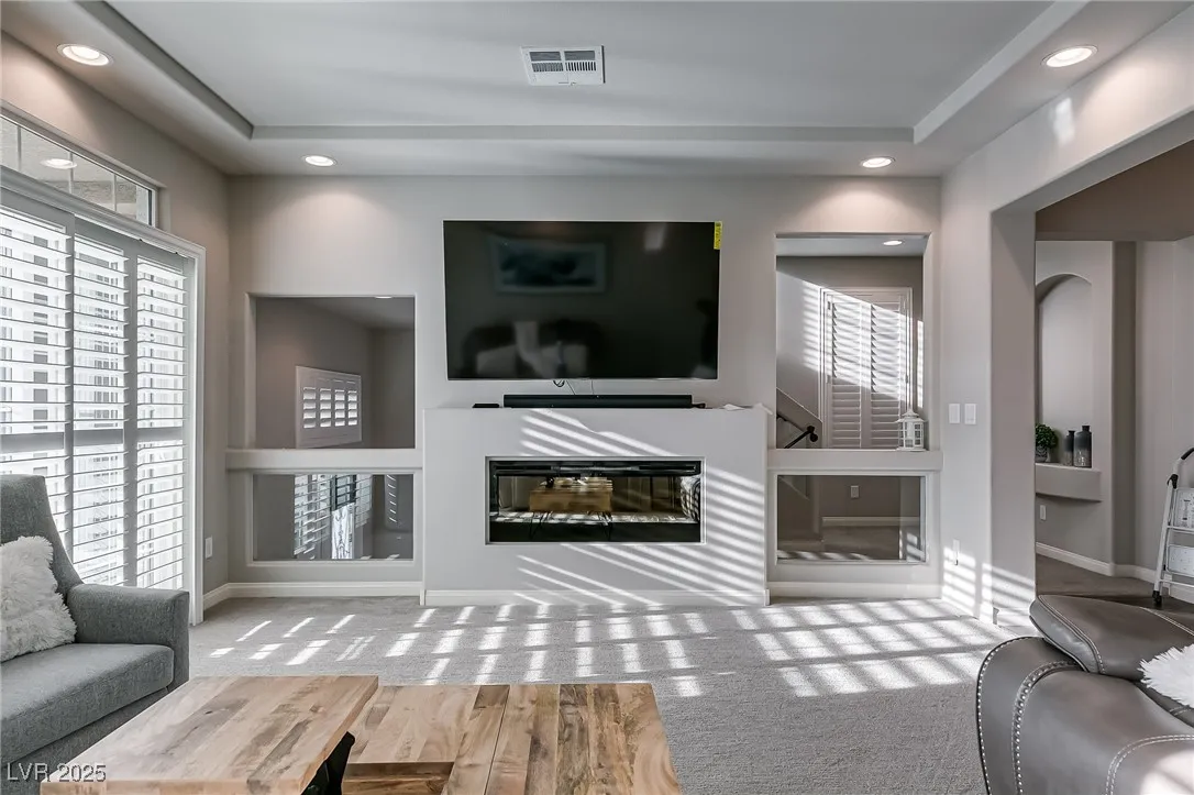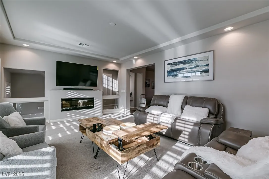 Great property, great location,designer’s input,fully furnished, comes with all you need,including all security systems.Built in 2020. Boasts 2 primary B/R suites.1 on lower level w/ a walk in closet, a walk out family room, luxury carpeting. Customized fireplace w/ changing LED lights, Owners has spared no expense: enhanced Kitchen w/ stainless steel appliances, farmers sink, quartz counters, custom refrigerator, backsplash & a large center Island. Luxury vinyl planks. Alkaline water filtration installed. Plantation shutters in all windows of the house, solar screens in L/R, tankless water heater & more. 3rd level offers the primary B/R, a customized walk in closet along w/ the 2 B/R & bath & a nice size loft. Backyard has a new heated pool/ spa, w/ water softener & changing LED lights. Prime location in the SW, mins from freeway, shops, restaurants, schools,. Allegiant stadium, strip, airport is only 15 mins drive. This house has it all.