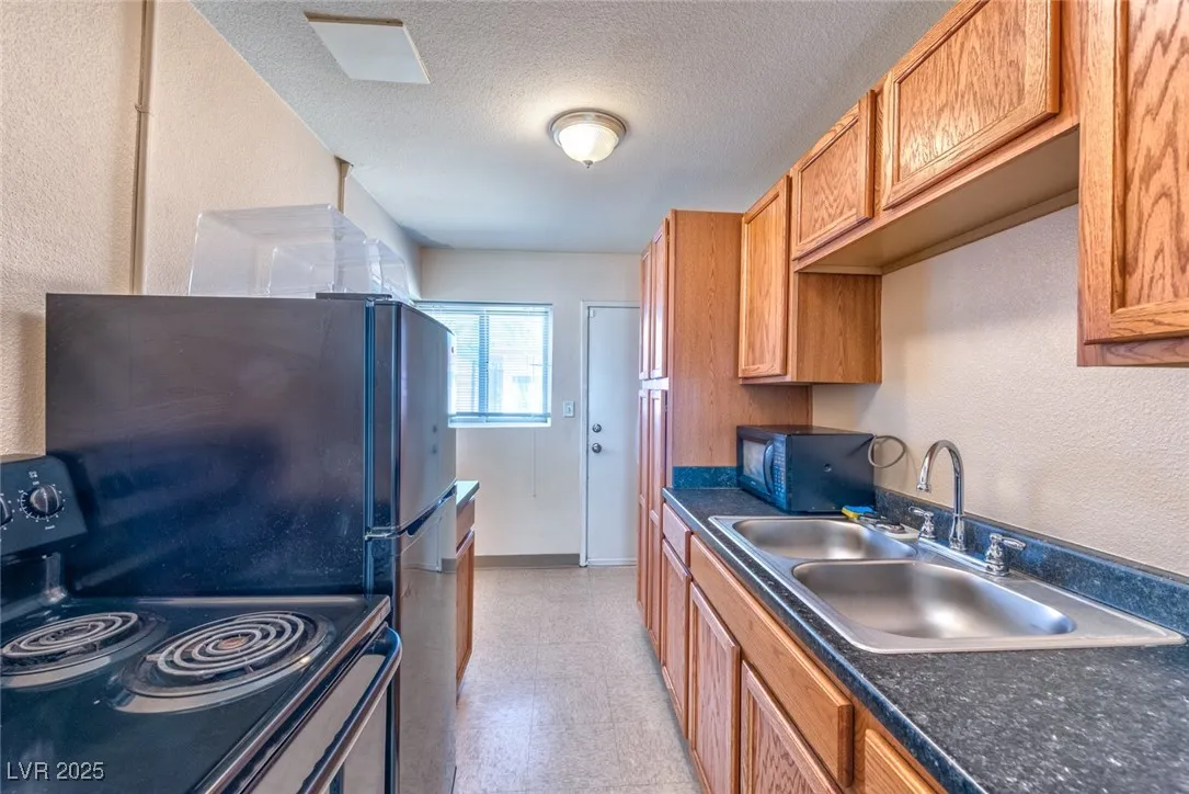 Experience the excitement of Downtown living in this charming 1-bedroom, 1-bath condo, perfectly situated just a short stroll from the vibrant energy of Container Park and Fremont Street! Nestled within a fully gated community, this home offers comfort, convenience, and a welcoming atmosphere. Step into the spacious front living room, where soft carpeting and a ceiling fan create a cozy space to relax or entertain. The large primary bedroom includes a generous walk-in closet, providing excellent storage and a peaceful retreat. Enjoy the added benefit of an on-site community laundry room, making everyday chores simple and accessible. A private back patio extends your living space outdoors—perfect for morning coffee, evening unwinding, or creating your own little garden oasis. With its unbeatable location and comfortable layout, this condo offers the ideal blend of downtown lifestyle and homey charm. A must-see opportunity!