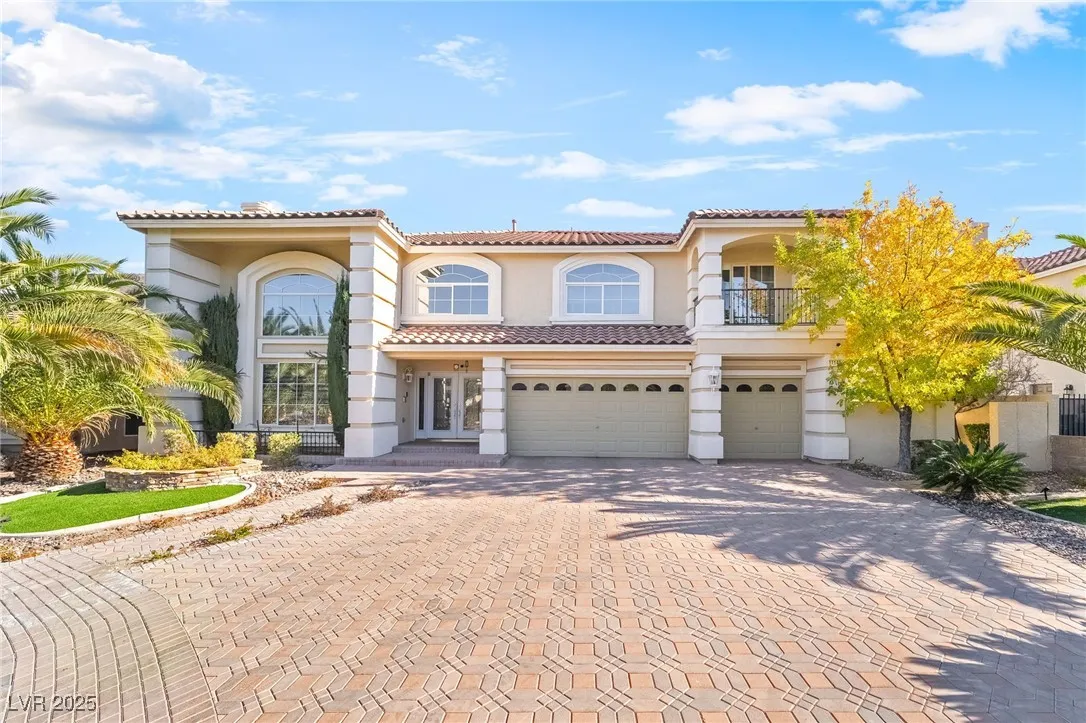 Perched at the end of a cul-de-sac in the guard-gated Royal Highlands community, this expansive 5,025-sq-ft home built in 2004 offers four bedrooms and three baths, including a downstairs bedroom suite. Inside, enjoy grand living spaces with vaulted ceilings, multiple fireplaces (including in the kitchen and master), a finished basement, a movie theater, a gym, a sauna, and a wet bar — perfect for entertaining. The kitchen features granite countertops, an island, and a breakfast bar, while the family room provides warmth and character. Outside, the 10,018-sq-ft lot is beautifully landscaped with synthetic grass, a built-in BBQ, and a heated inground pool and spa, all enclosed for privacy. The three-car garage and central vacuum system add functional convenience, and the strong security of a guard-gated neighborhood gives peace of mind.