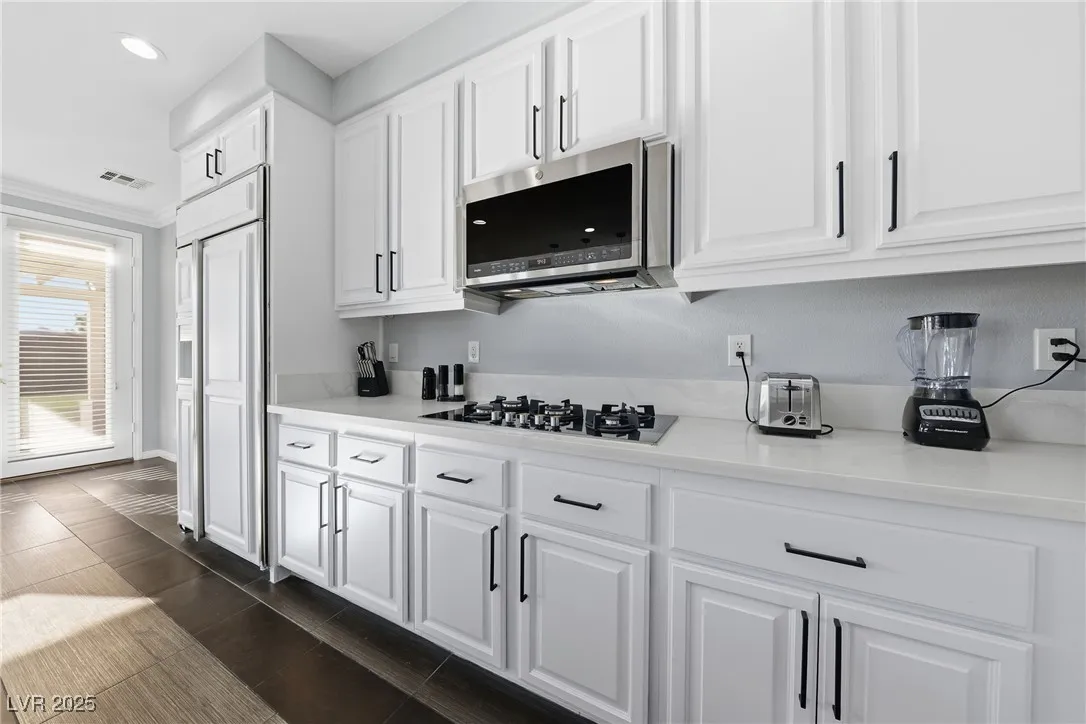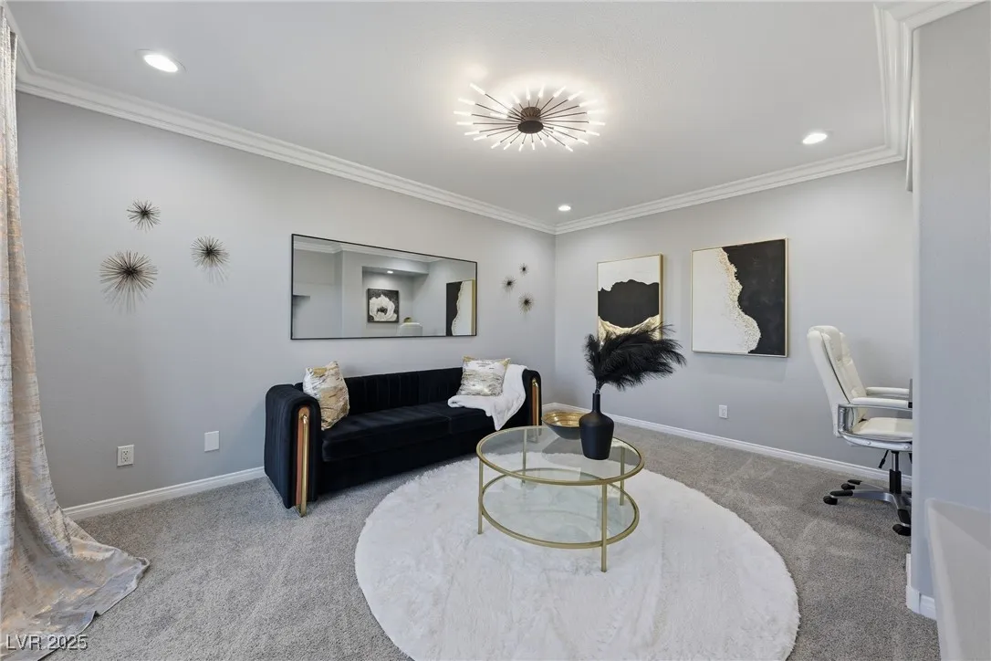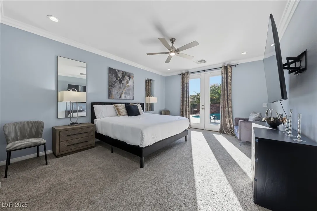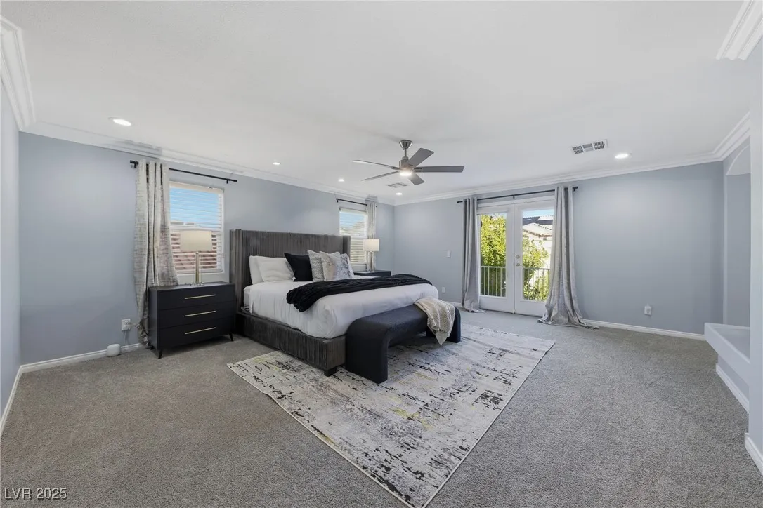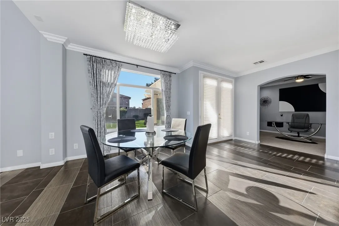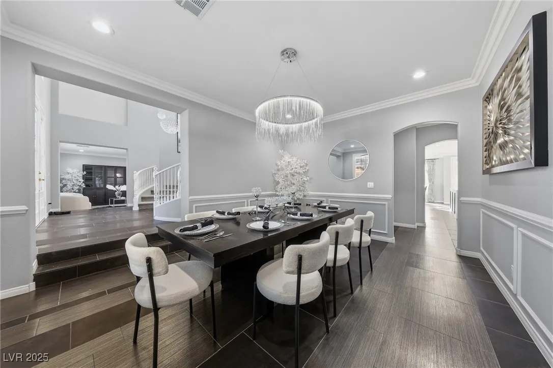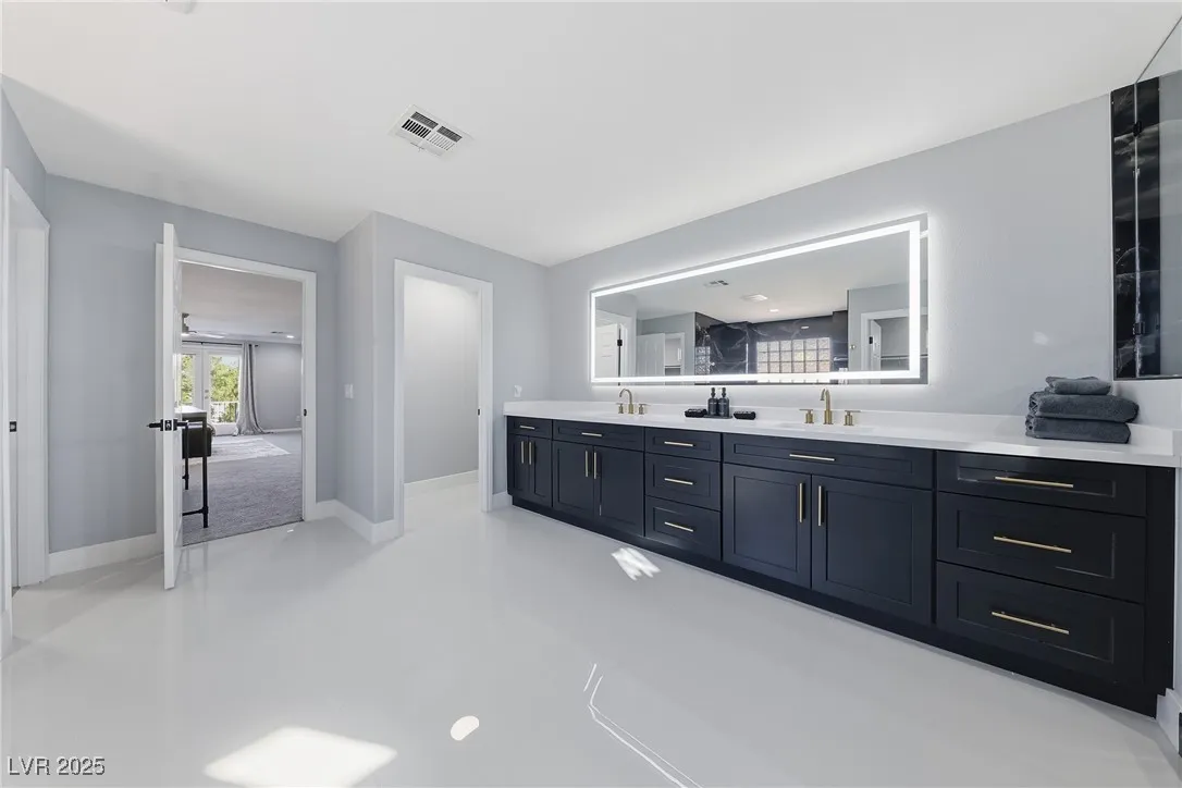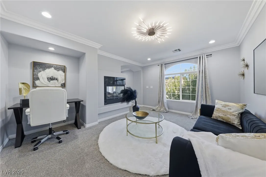 WOW! Exquisite nearly 5,000 sq. ft. residence in Spring Mountain Ranch. From the soaring foyer to the stunning great room, this home radiates modern luxury. Sleek marble accents, designer lighting, and custom built-ins elevate every inch. The open layout flows into a chef-style kitchen and chic dining area, perfect for entertaining. Enjoy two elegant primary suites—one with a private balcony and lounge—plus beautifully curated living spaces that blend style, comfort, and total sophistication. The moment you walk in, you’ll feel the “wow” factor. Fully furnished including linens, and a well-stocked kitchen. Flexible rental terms starting at $7,950/month for a one-year lease which includes pool and landscape maintenance; shorter stays available with utilities included.