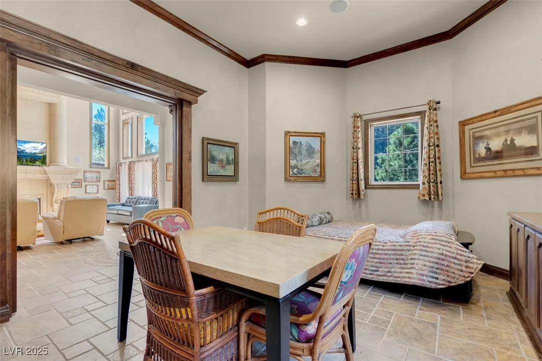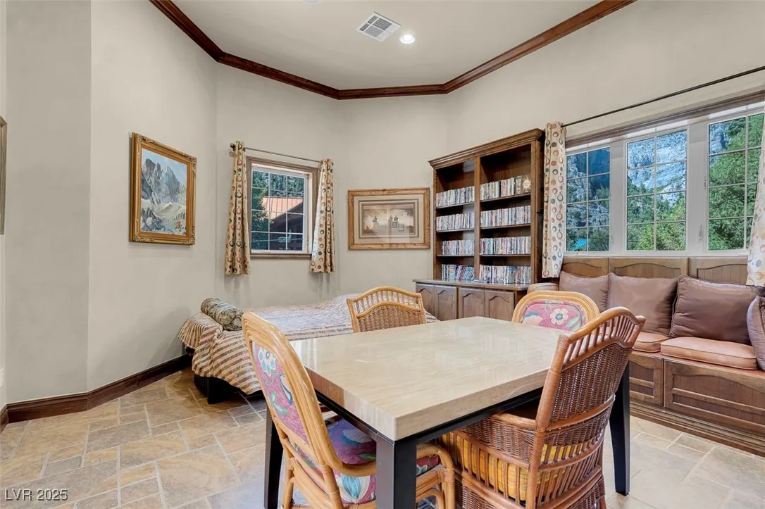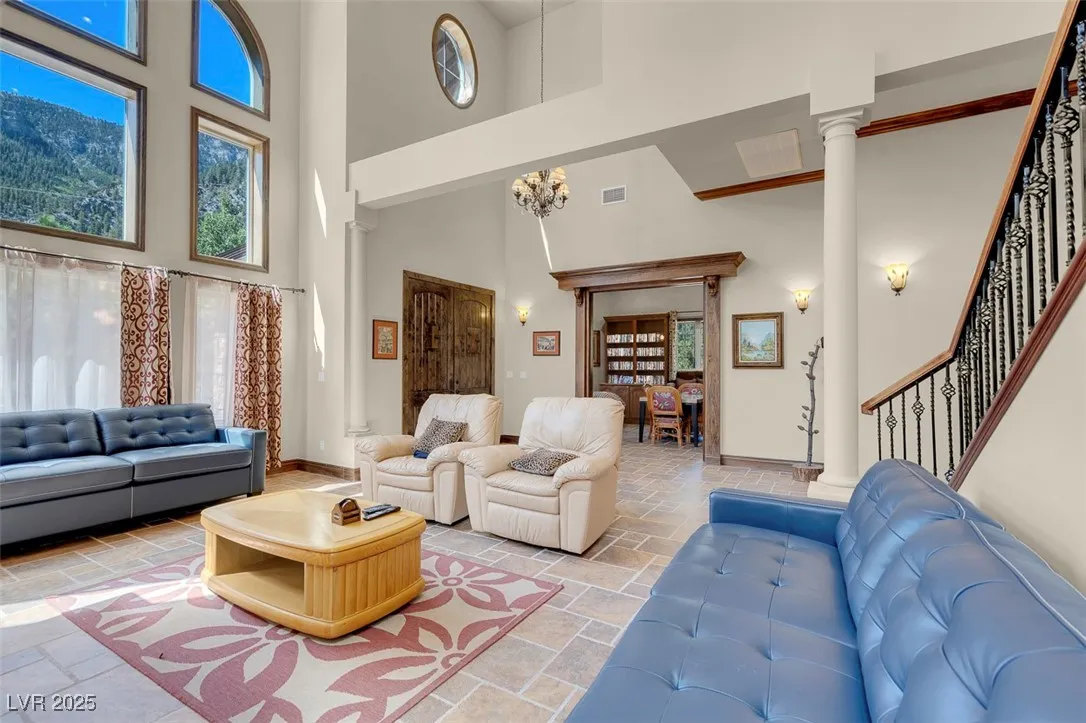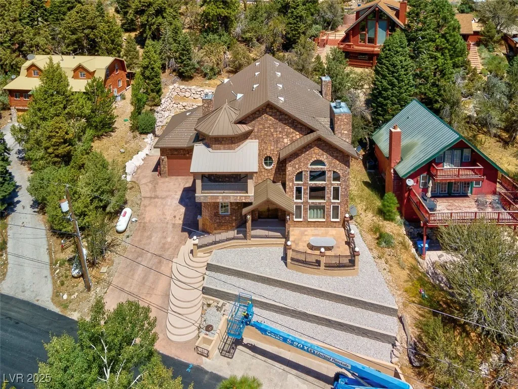 Fully furnished Mount Charleston getaway with spectacular views! Situated on a lot of more than 10,000 sq ft., this custom 2-story house was built in 2006 and has 4,510 sq ft of living space, 5 bedrooms, 4 full baths, a library/den, and 2 fireplaces.