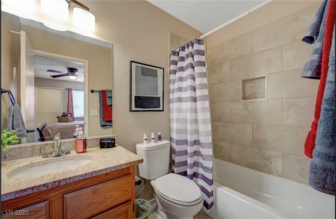 Fully furnished single story home with tile flooring throughout and upgraded finishes such as neutral paint colors, granite countertops and stainless steel appliances. This home features a split open floor plan with the primary bedroom on the opposite end of the other bedrooms, a cozy fireplace in the living room, ceiling fans and a fenced backyard with amazing mountain views! Enjoy all utilities, housewares, and linens included with your stay.