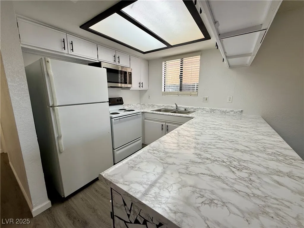 YOU DONT PAY APP FEE UNTIL YOU KNOW YOU QUALIFY!!! This beautifully updated 2-bed, 2-bath first-floor unit is move-in ready! The unit offers 1,033 sqft of living space, an open-concept layout, has been freshly painted, & features brand-new luxury vinyl flooring throughout. Enjoy the wet bar in the living room, along with shade provided by brand-new blinds throughout. The kitchen includes a brand-new microwave, breakfast nook, and all essential electric appliances, while the in-unit laundry room with washer and dryer adds convenience. Additionals: 1 assigned parking space & private storage unit on the side of the building. Water, trash, & sewer are included in the rent. Pets welcome, big & small with deposit & monthly pet rent. Stylish, functional, & ready for you to call home! Minutes to public transportation bus stops, Shopping centers, Walmart, fast food restaurants, Gaming, Freeway access. 5 min drive to zoned elementary school & middle school. 10 min drive to zoned high school.