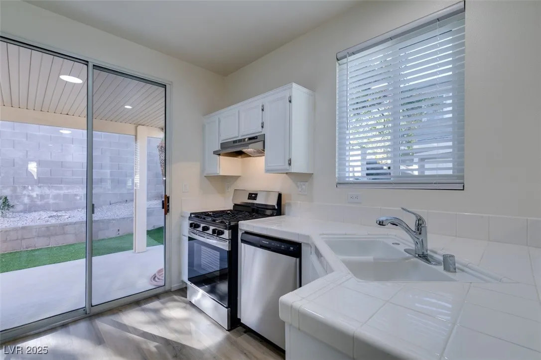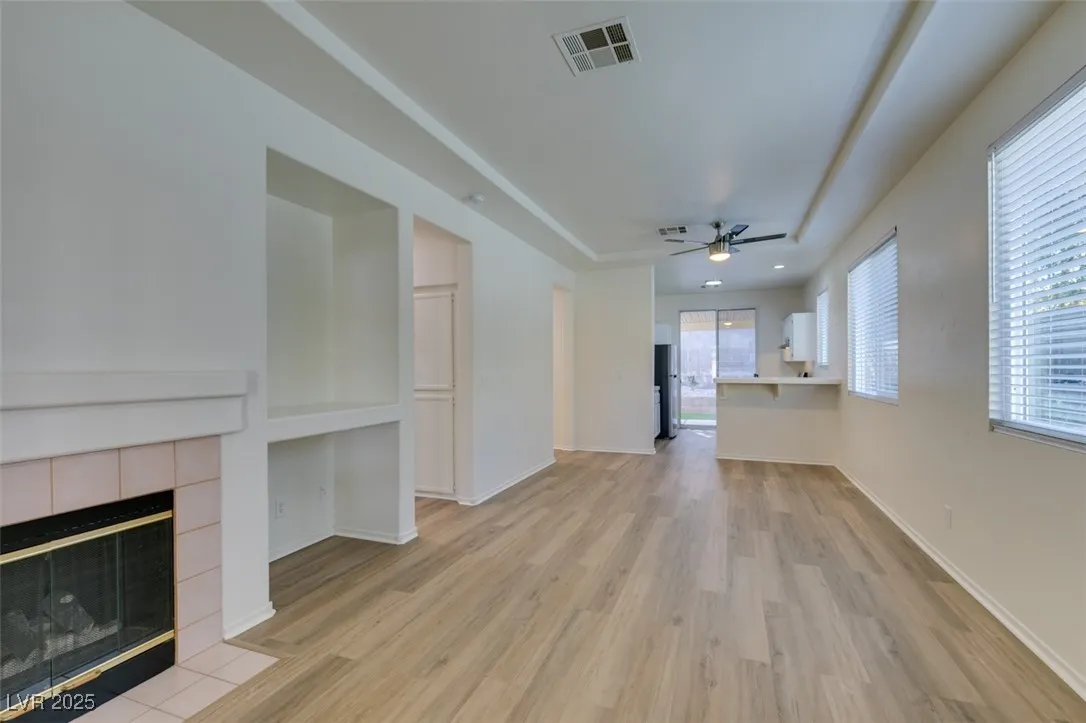 Welcome to the Summerlin Beauty, a stunning single-story home located in the vibrant city of Las Vegas, NV. This upgraded gem boasts three spacious bedrooms and two full bathrooms, offering ample space for comfort and convenience. The open floor plan is accentuated by laminate wood flooring and a large living room, complete with a cozy fireplace for those cooler evenings. The kitchen is a chef’s dream, equipped with stainless steel appliances, tile counters, and a breakfast bar. Adjacent to the kitchen, you’ll find a dining area perfect for hosting meals. The master suite is a retreat in itself, featuring dual sinks and a custom closet. Step outside to a well-maintained landscape and a covered patio in the rear yard, ideal for outdoor relaxation. As a resident, you’ll also have access to the community pool, a perfect spot for cooling off during those hot Nevada summers. Experience the blend of comfort and style in this Summerlin Beauty.