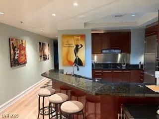 This two bedroom 2 !/2 bath condo comes completely furnished with designer furniture so bring your clothes and enjoy the 200 ft wrap around balcony with 180 degree strip views.