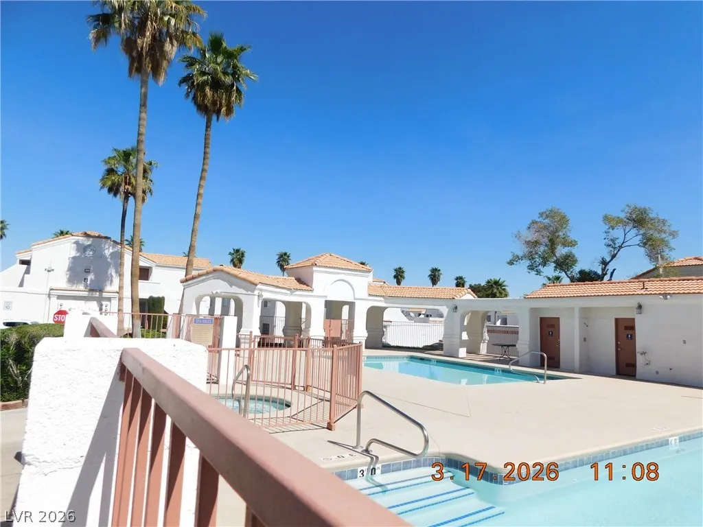 Beautiful 2 bedroom 2 bath condo in the gated community of El Parque, 2 pools, spa, manicured landscaping. Carpeting and laminate flooring All appliances; breakfast bar, ceiling fans, 1 car attached garage with storage cabinets; private patio and breezeway. Primary bathroom has step-in shower. Located just minutes from shopping, entertainment, and great restaurants. 10 minutes from Interstate 15 and all of the fabulous Las Vegas casino’s. Ready for immediate move-in. NOTE: ENTIRE UNIT, with the exception of the bathrooms, is going to be RE-CARPETED. DO NOT USE SHOWING TIME.