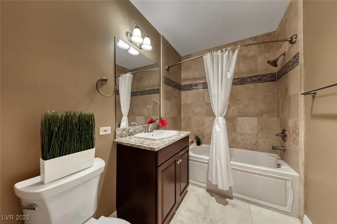 Breathtaking lake, golf course, & mountain views welcome you to this stunning corner condo in the gated Villa di Lago community at Lake Las Vegas. This spacious condo offers 3 bedrooms, each w/ its own full bathroom, plus 1 powder room, w/ an open-concept layout featuring tray ceilings, recessed lighting, & abundant natural light. The kitchen includes rich dark wood cabinetry, granite countertops, a large island w/ sink, mosaic tile backsplash, & all-electric stainless steel appliances, including a built-in wall oven & microwave. Tile flooring flows through the main living areas w/ laminate & carpet in the bedrooms. A spacious family room opens to 1 of 2 private balconies, while the primary suite offers its own balcony, walk in closet, & spa-style bath. Community amenities include gated entry, assigned indoor parking, guest parking, storage & security. Tenant responsible for electricity only. Enjoy the Lake Las Vegas lifestyle w/ a 320-acre lake, water sports, dining, events & more