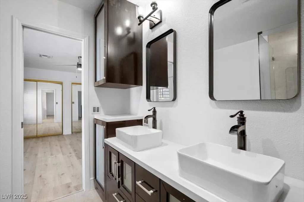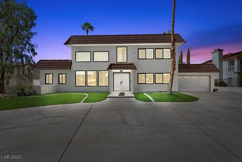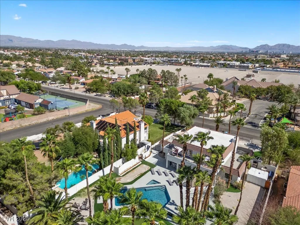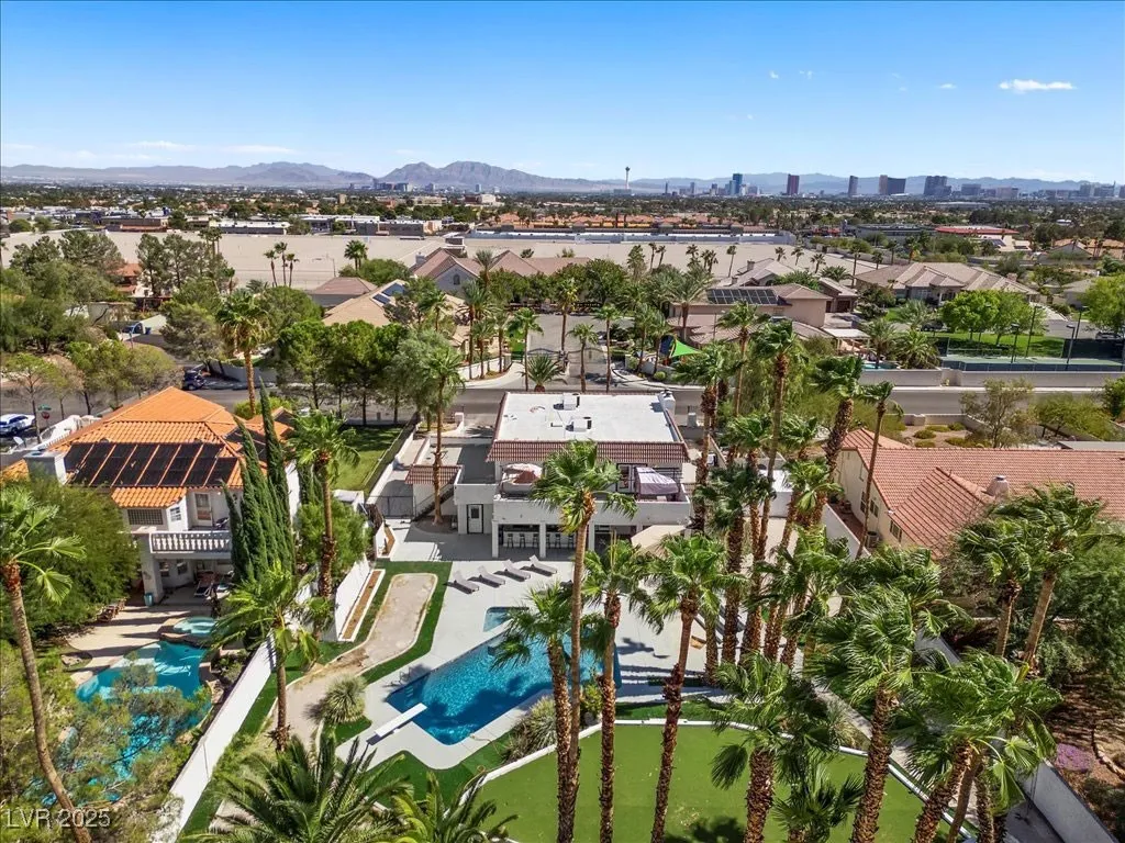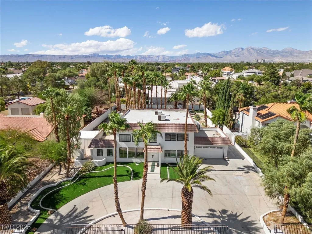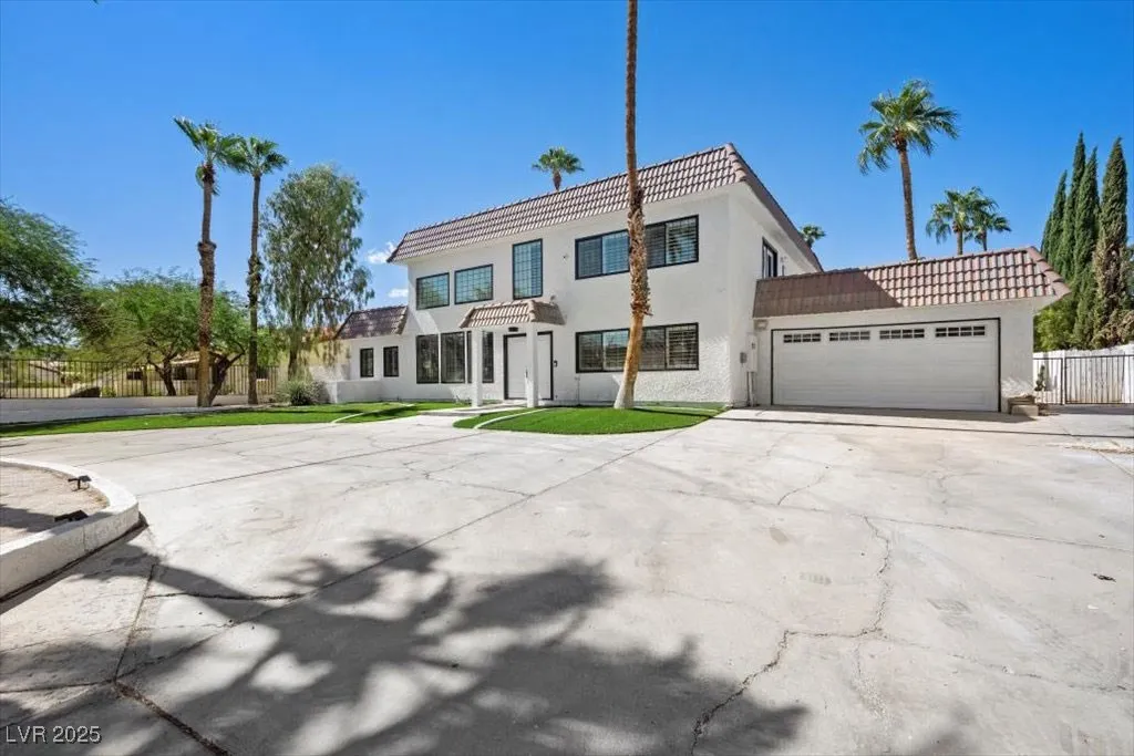 Discover a one-of-a-kind expansive estate where timeless design meets everyday comfort. Featuring 5-bedrooms, 3-bathrooms and 3,458 square feet of living space, this residence offers thoughtful touches throughout. The chef-inspired kitchen features granite countertops, custom cabinetry, and sleek stainless steel appliances. The primary suite provides a private retreat with a spa-like bathroom while additional bedrooms offer flexibility and additional privacy, including a hidden office/den! Entertain with ease in the open living and dining areas, or step outside to your personal oasis: a dazzling pool with a classic dive board, 2 firepits, covered patio bar, and towering palms that bring resort-style ambiance to your backyard. A circular driveway and RV parking add everyday convenience, while proximity to world-class shopping, dining, and the Las Vegas Strip ensures you’re never far from the action! Comfort, style, and versatility all wrapped into one unforgettable move-in ready home!