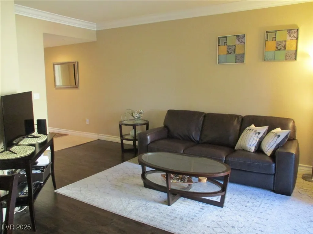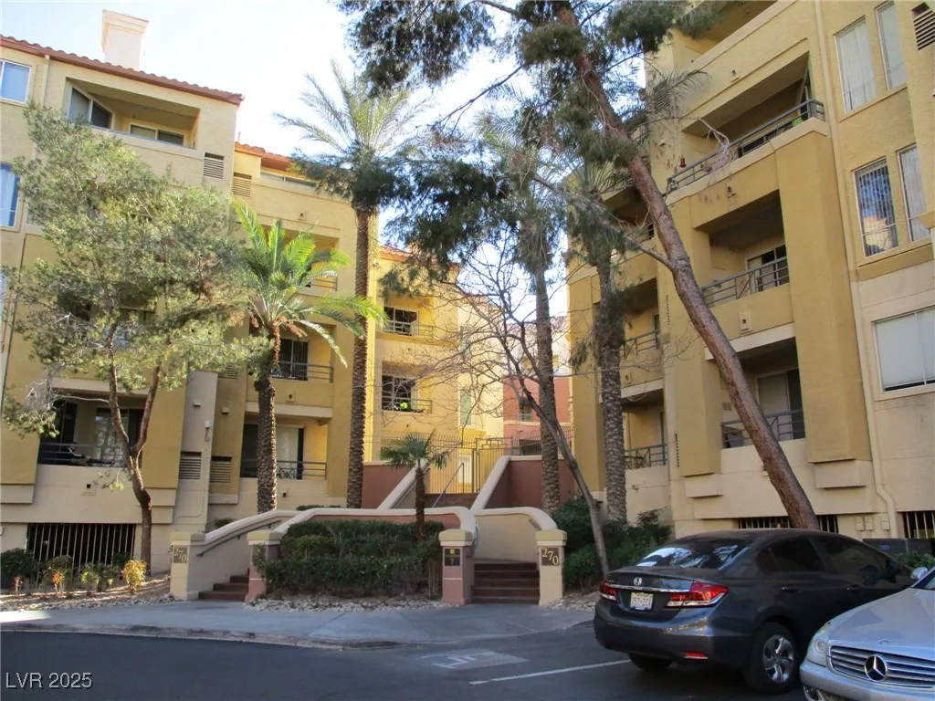 BEAUTIFULLY FURNISHED ONE BEDROOM, LOCATED MINUTES FROM STRIP! GUARD GATED/CLUBHOUSE/GYM/RACQUETBALL/TENNIS/POOL & SPA! 2 TONE PAINT, MARBLE FLOORS, LAMINATE FLOORING & UPGRADED FIXTURES. STAINLESS STEEL APPLIANCES, GRANITE COUNTER TOPS, COFFERED CEILING & CROWN MOULDING, WASHER & DRYER IN UNIT. ASSIGNED UNDERGROUND PARKING!